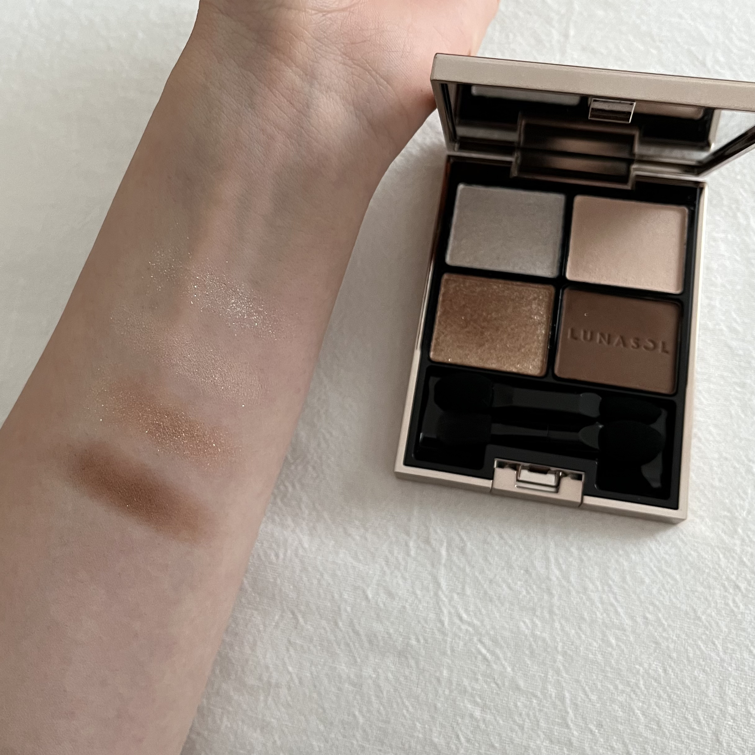 ラメが綺麗すぎて一目惚れしたアイシャドウ。 持っているアイシャドウがピンク系ばかりで、あまり持っていないベージュ系のアイシャドウを探してたんだけど、オフィスでも使いやすい色とキラッキラのラメが可愛すぎる どのリップと合わせてもしっくりくるから本当に使いやすくて万能、毎日使いたい
