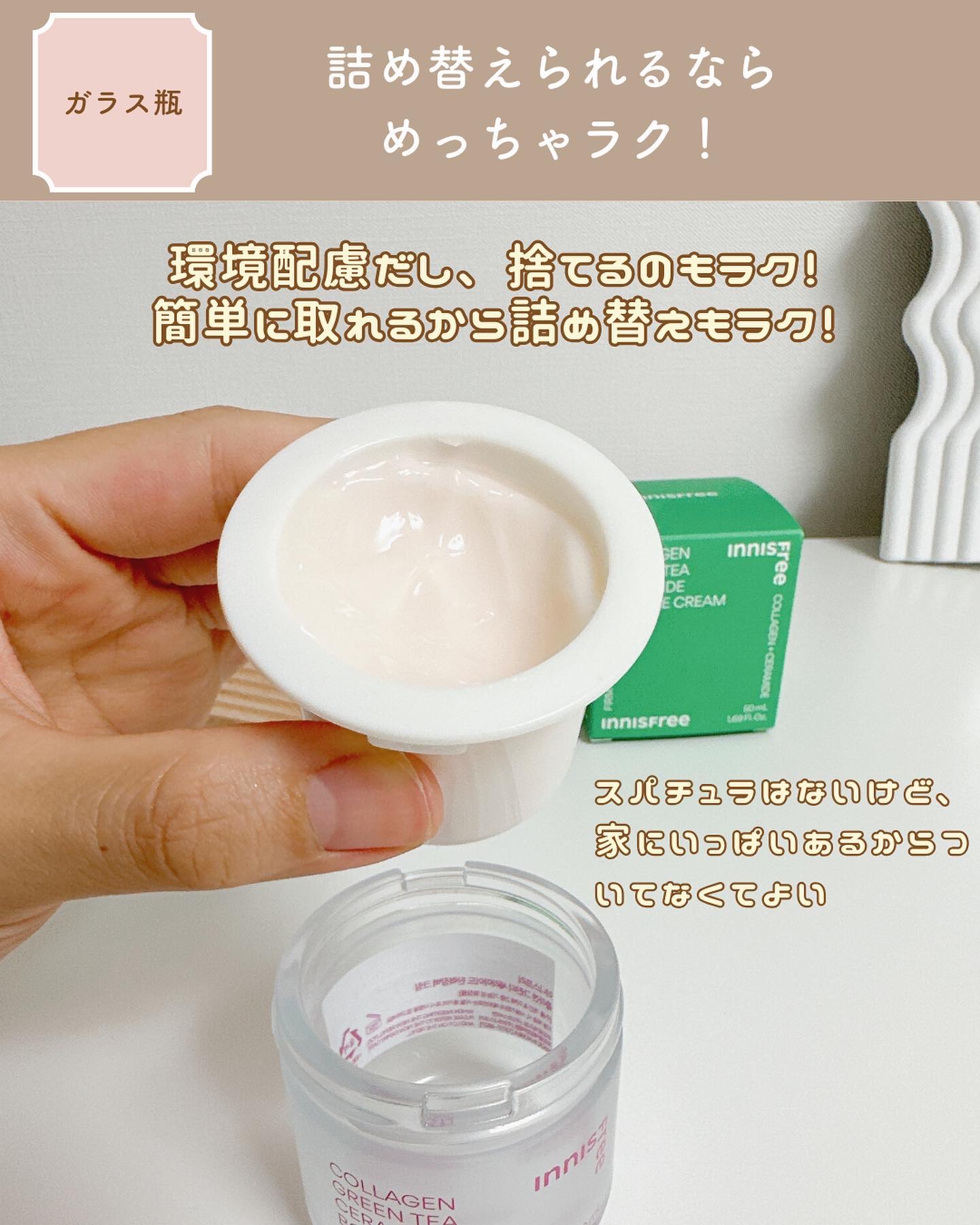 #innisfree#コラーゲングリーンティーセラミドバウンスクリーム ❁❁❁◯伸びが良い◯無香料◯保湿力高い◯パケが可愛い◯ハリが出た△若干ベタつく💦 ❁❁❁#韓国コスメ#コラーゲン#韓国スキンケア#保湿クリーム#セラミド#qoo...