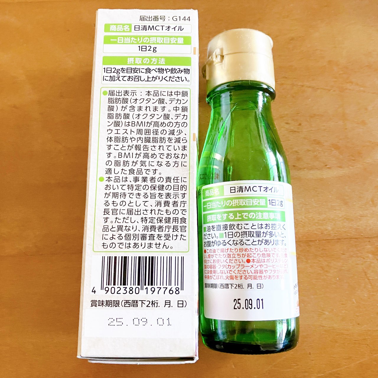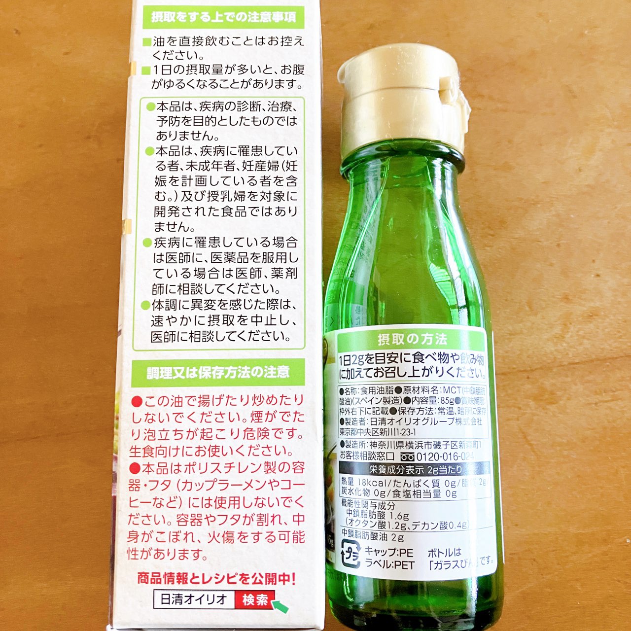 毎日の食事の準備や買い物、掃除…これが脂肪燃焼タイムになったら、家事ははかどるし、体脂肪や内臓脂肪も減ってくれて嬉しいなぁと思います。 日清MCTオイルHCに含まれる中鎖脂肪酸(オクタン酸、デカン酸)はBMIが高めの方の日常生活時の脂肪の燃焼を高めること、ウエスト周囲径の減少、体脂肪や内臓脂肪を減らすことが報告されています。 使い方は、いつもの食事に「かけるだけ」という手軽さ。
