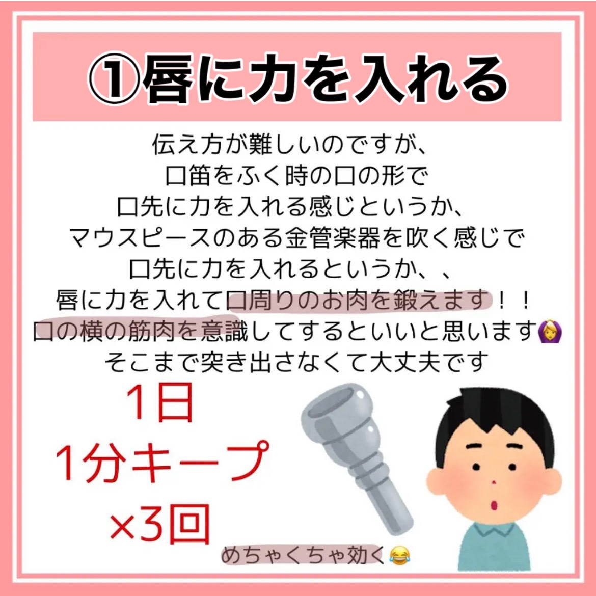 簡単に出来ることばっかりだから頑張ってみる!! 吹奏楽部で金管楽器やってるから例えがめっちゃ分かりやすい!!
