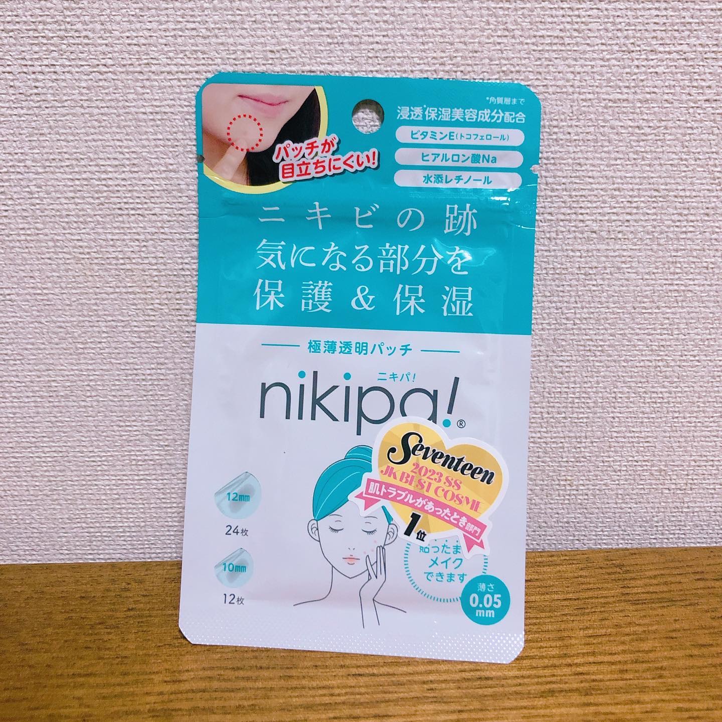 上からメイクできる、薄さ0.05mmの極薄透明パッチ「ニキパ!プレミアム」をご提供いただきました。たくさんの保湿美容成分が入っているので、気になる方は画像の箱裏をご覧ください。使い方は簡単。肌を清潔にした後しっかり水分を拭き取り、気になるとこ...
