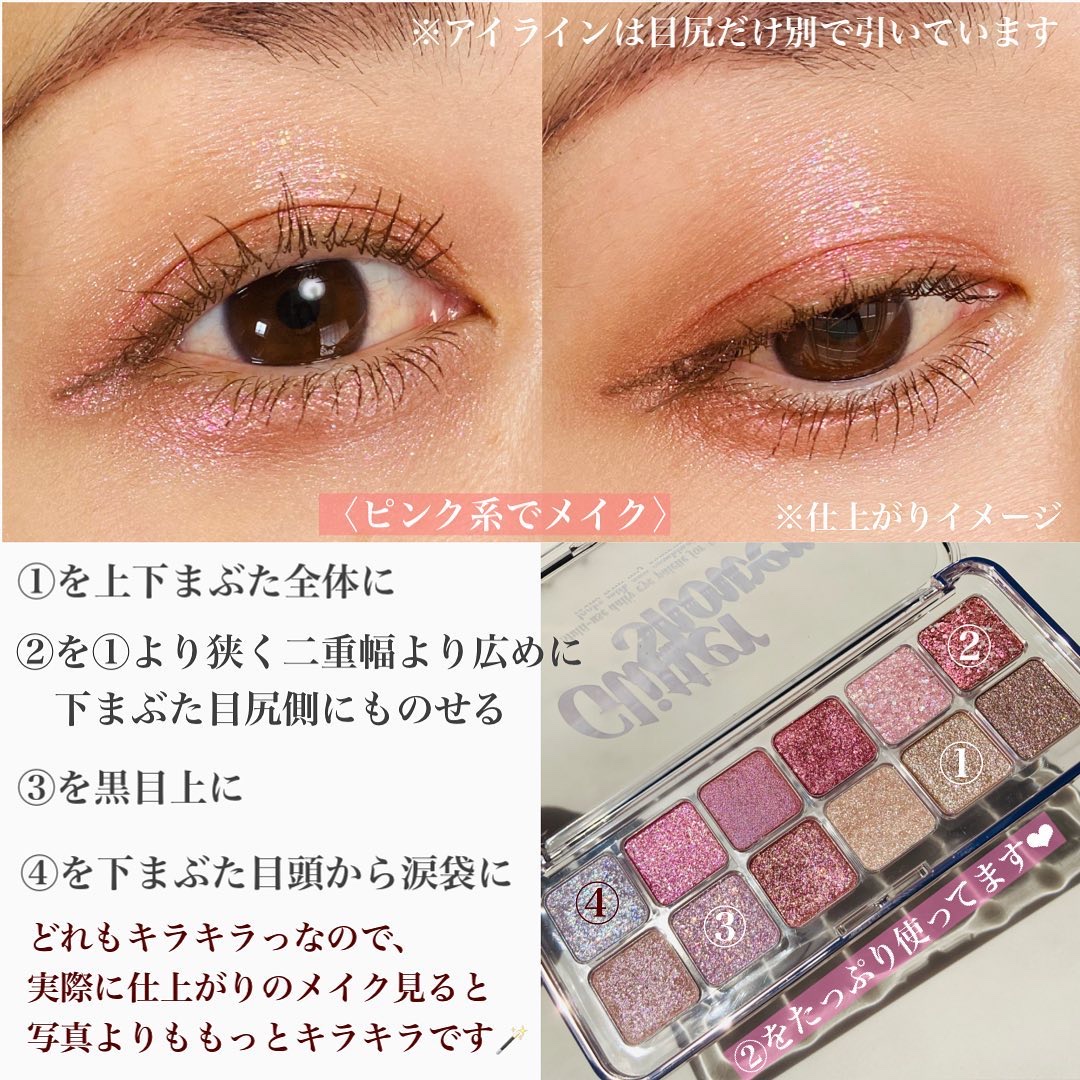 ピンク系メイクの黒目上ラメが効いててかわいい…🩷