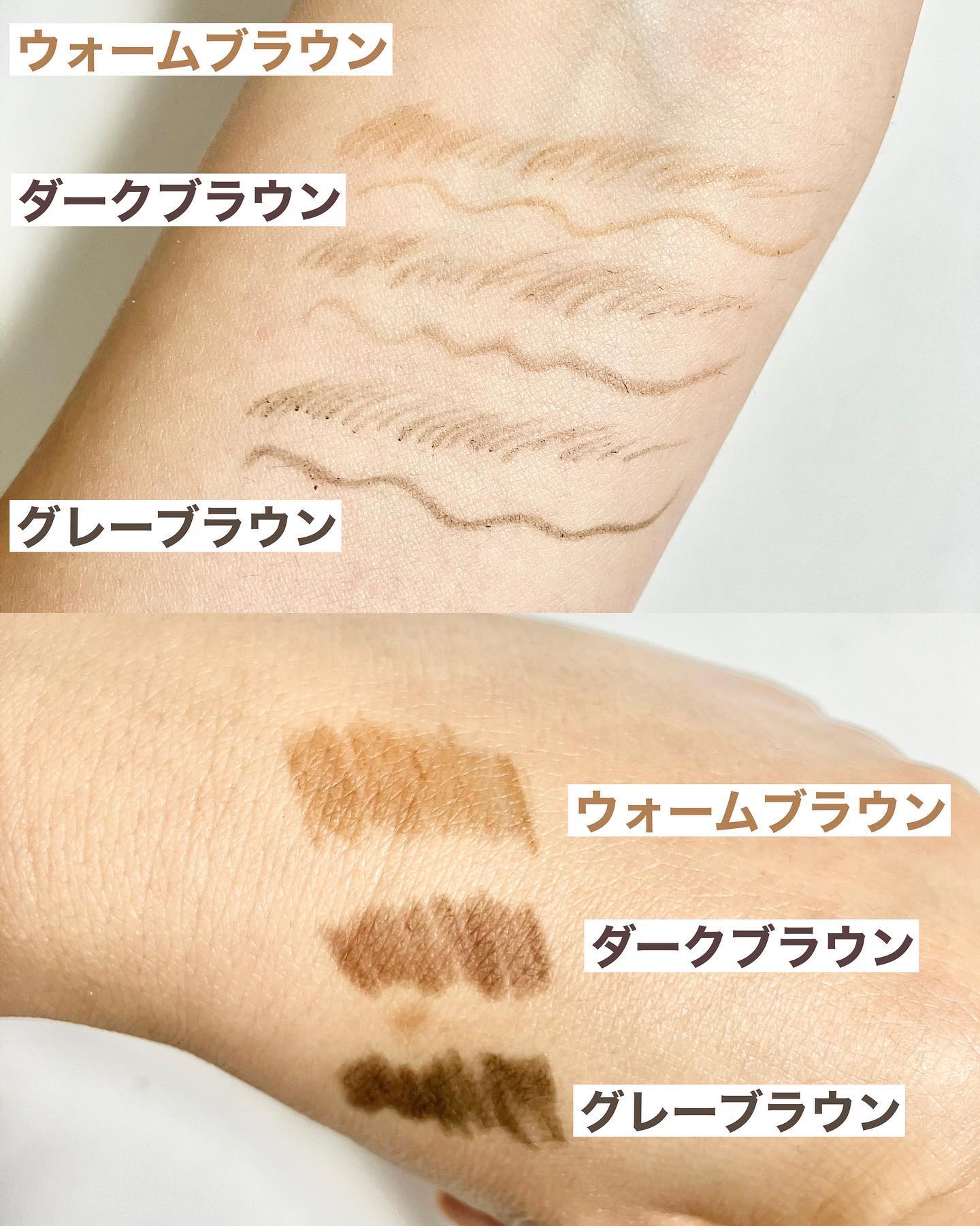ナチュラルで主張しすぎないグレーブラウンのカラーが最近の推し! 細いけど折れることはなくて使いやすいし、後ろにブラシがついているからこれ一本あればぼかしもできる! ナチュラルに仕上げたい時は眉尻だけ書いて完成で全然良い!