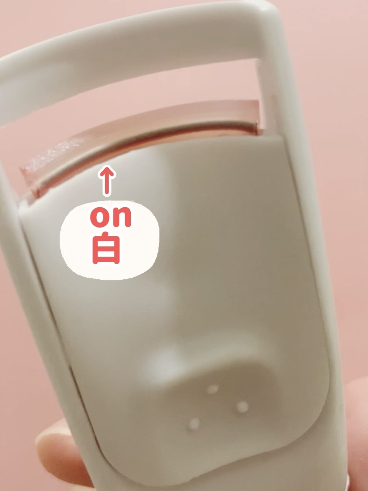 パッドの色 off→赤 on→白 15秒位でonになります 電源切り忘れ防止目印付き スイッチが 無印側がoff 赤い印側がon 単4電池2本別売り 200円と思えない位ばっちりまつ毛あがります😊 すぐ温まって使えて便利