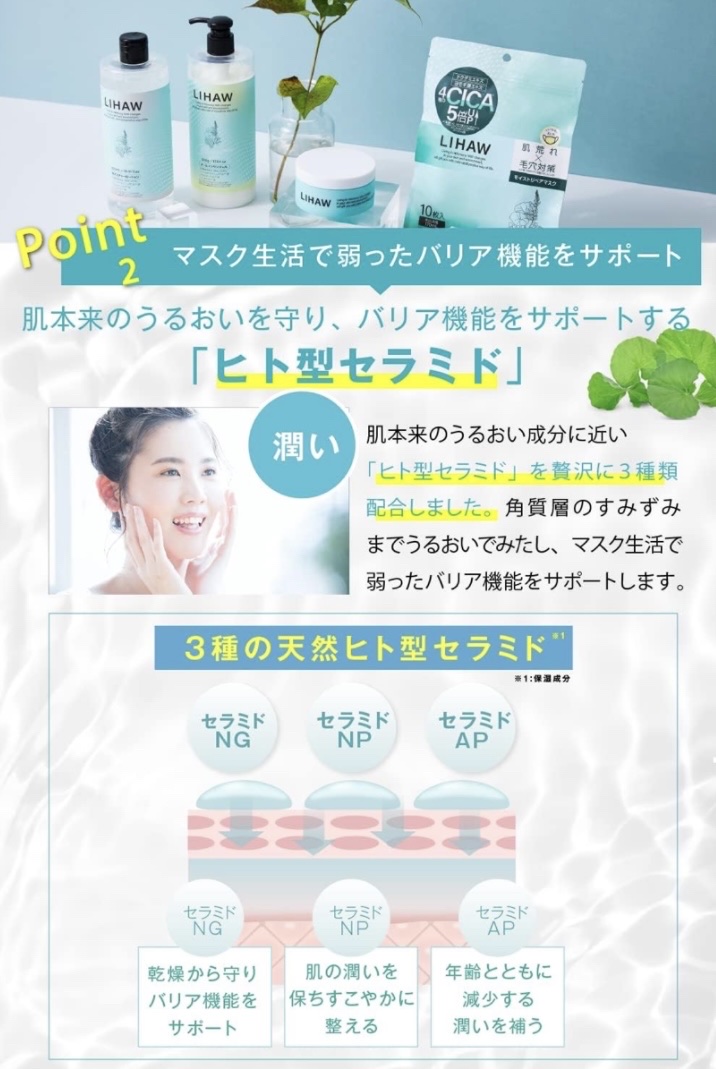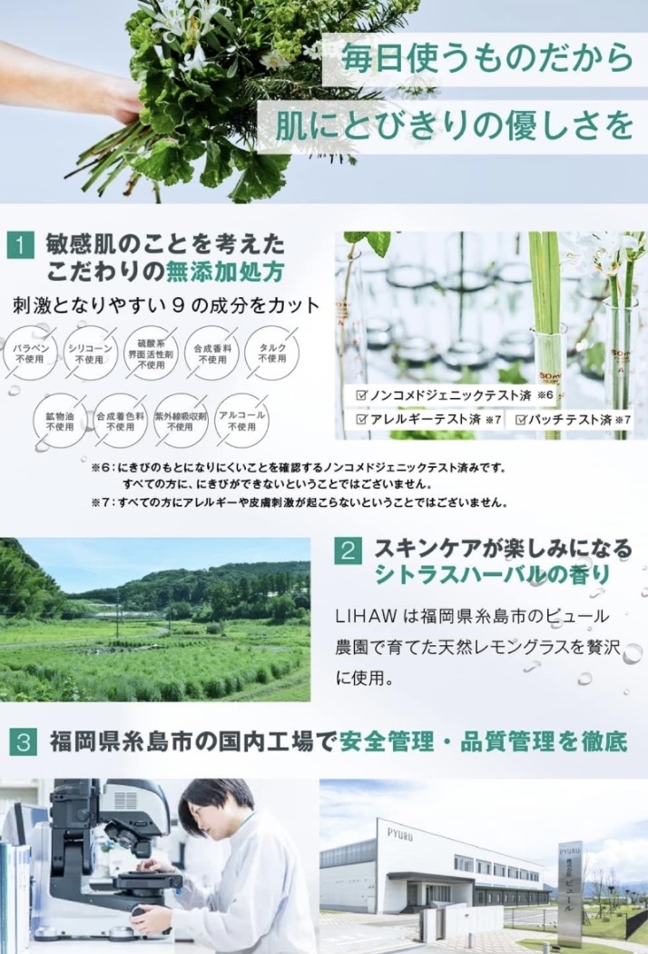 - 敏感な肌に使えてしっかりとしたメイク落ちとやさしい使い心地を両立したオリジナル処方。植物由来の洗浄成分をはじめ、LIHAW共通成分CICAエキス*1と植物エキス*2で繰り返す乾燥・肌あれを防ぎます。さらに肌をすこやかに保つ乳酸菌*3を配合で肌を守るバリア機能をサポート。1日の終わりにおだやかなクレンジングタイムを。 *1:ツボクサ葉エキス・ツボクサエキス・マデカッソシド・アシアチコシド(整肌成分) *2:ドクダミエキス、ヨモギ葉エキス、カンゾウ根エキス(潤い成分) *3:エンテロコッカスフェカリス(保湿成分)