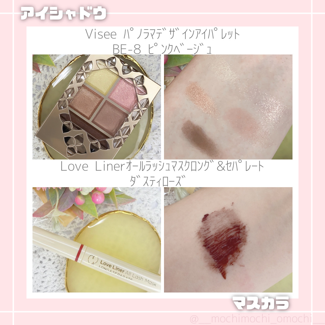 温かな雰囲気で愛されオーラを感じる ナチュラルに色気を宿すカラーパレット 10色の中に5つの質感が閉じ込められていて 重ねるごとに色気が際立つ…💕 粉質はこれViseeなの!?て思うくらい 今までのViseeとはちがう もっともっとしっとりとしてて お肌にぴたーっと密着してくれる感じ😳✨ このラメ感はプチプラじゃないよ… 本当にキレイすぎてずっと眺めていられるし うへへ〜てよ○れが出そうになるくらいキレイ。笑 アイシャドウとしてだけではなく チーク、ハイライト、シェーディング にも使えるカラーが入ってるから これ1つでだいたいのメイク完成させられて めちゃくちゃ時短になるっ◎ 粘膜色だから肌なじみ抜群だし この色味と程よいツヤのおかげで 血色感と透明感も叶えてくれるし ぬってすぐにティッシュでふいても しっかり色が残ってくれるし 良すぎてかわいすぎて困る!笑 塗るときもじゅわっと溶けるような 唇の上でするするすべる感じもお気に入り🥰