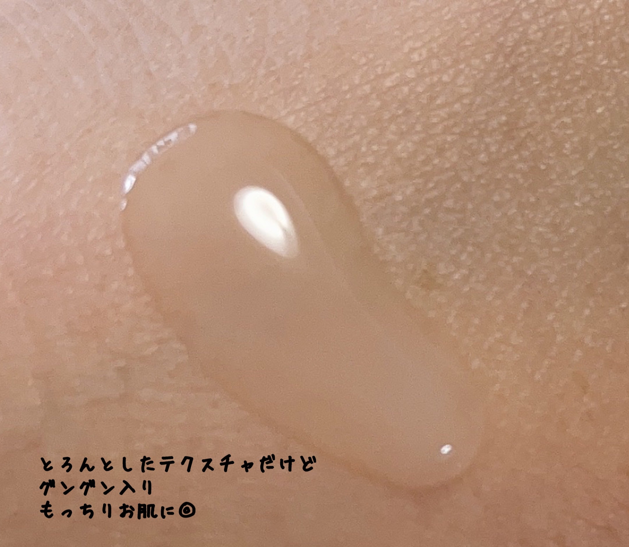 名前のとおり、美容液を塗ったかのような綺麗なツヤで、一度使うと虜になる。 毛穴も色むらも自然にカバーしてくれて、ツヤんと保湿力も持続する◎ 薄膜でピタっと密着して、急いで適当に塗っても丁寧に綺麗に仕上げた感が出て、テクいらずなのも魅力的◎ メイクキープ力も高いけれど、マスクにはつくかなぁってところ。 それ以外はもう良いところしかない✨ リピ確決定です🙆♀️ これ買うか悩んでいる人は絶対に買ってほしい🥺