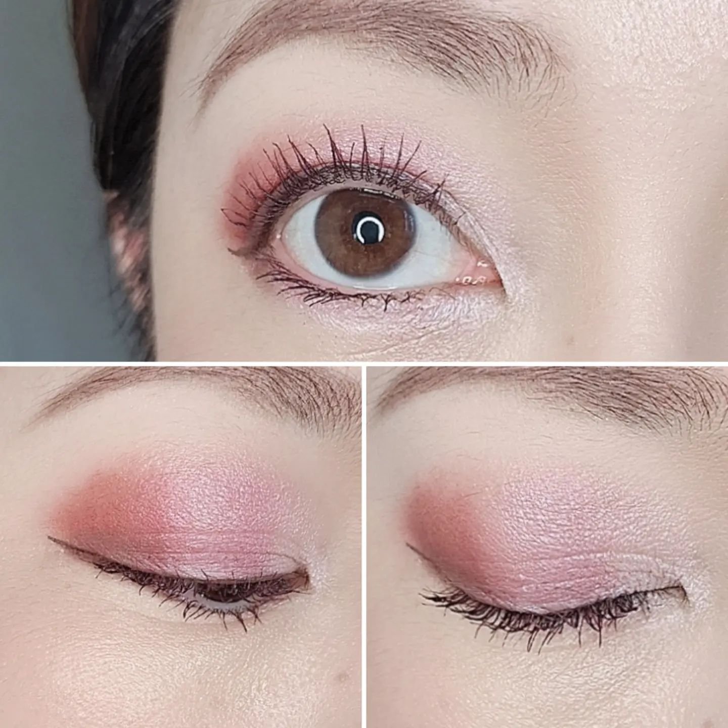 このパレットのお気に入りのカラーは、下段の2色🧡 発色も良く、綺麗にまぶたに色が乗ります❗ 下段真ん中のプラムカラーを目尻のキラから囲むように付けてます😊 パレット真ん中のピンク メタリックは、黒目の真ん中に指で上から重ねました💓 下まぶたの涙袋にも付けて、キラキラさせてます❗ マスカラとアイライナーは、どちらもダスティ ピンクのニュアンスカラー💗 アイカラーを目立たせたいのと、ピンクメイクでバレンタインを意識してみました😘❤