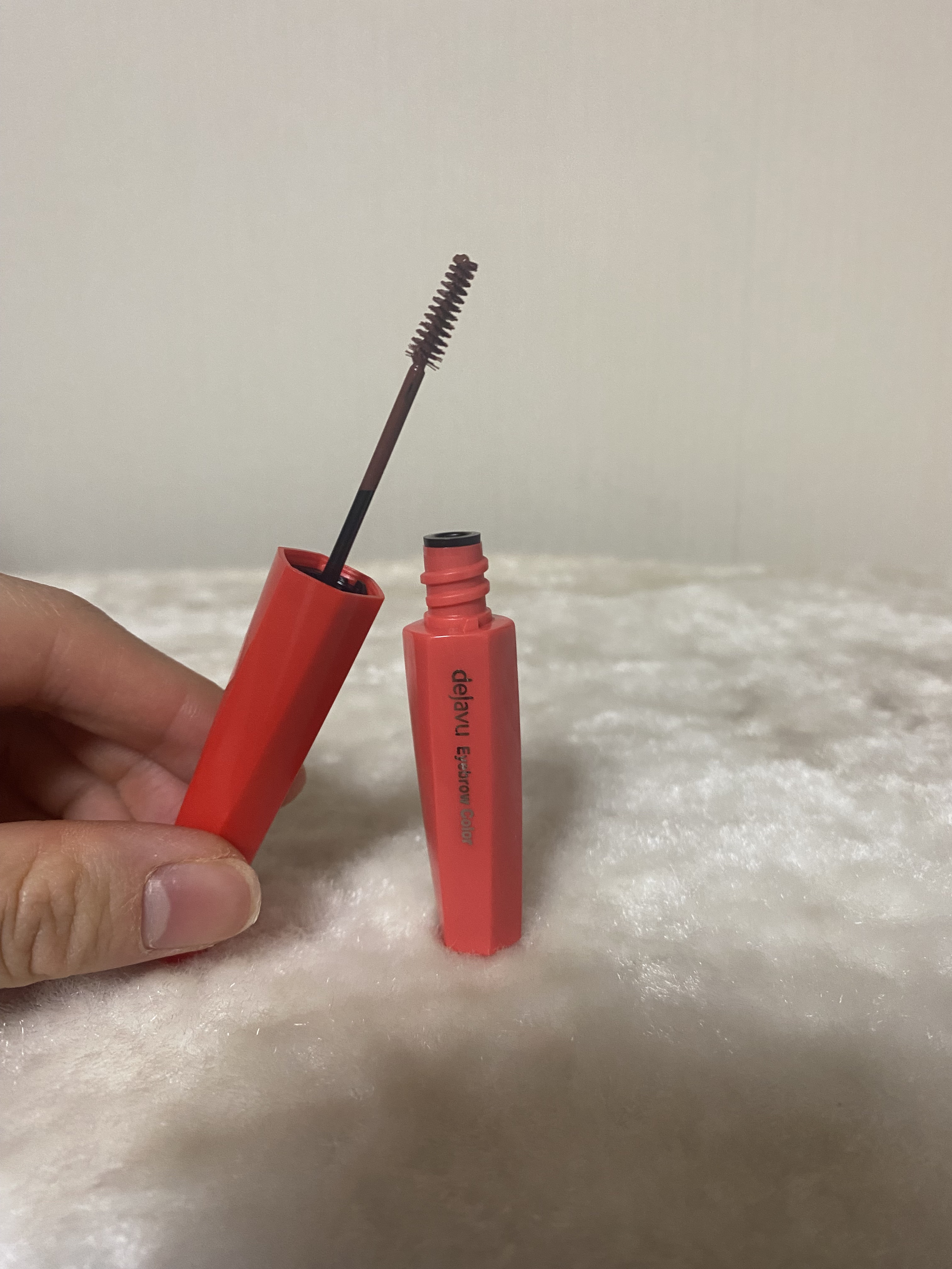 1本1本色づき固まらない「フィルム眉カラー」 塗りやすい極小ブラシで簡単垢抜け✨ デジャヴュ独自の薄膜フィルムを採用。 毛がパリッと固まらず、タバやダマのないふんわり自然な眉に。 フィルムタイプで速乾性が高く、皮脂・汗・こすれに強いのに、お湯だけで簡単に落とせます✨