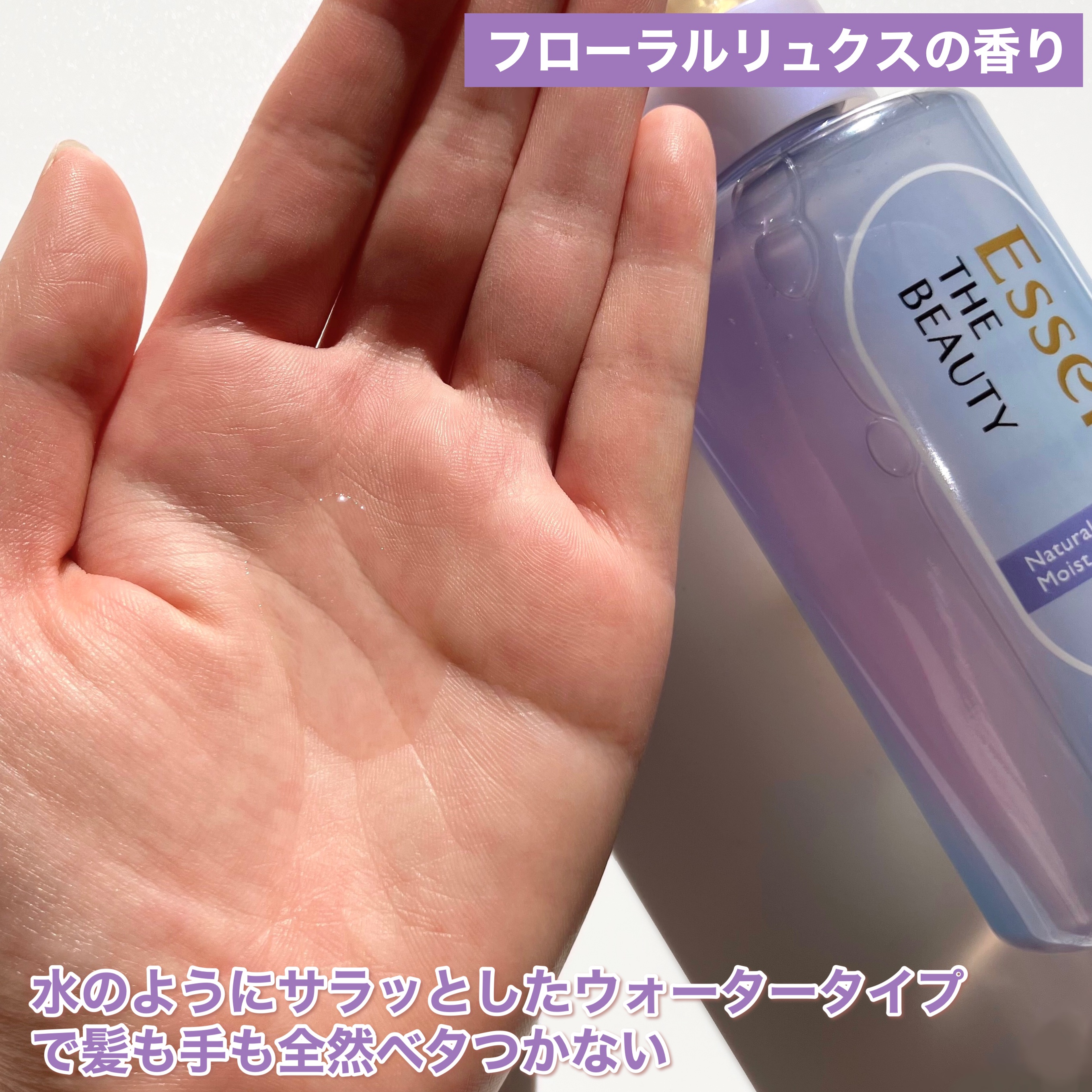エッセンシャルプレミアムウォータートリートメントナチュラルモイスト口コミ評価が高くて気になってたエッセンシャルのウォータートリートメントを使ってみました!【使い方】①タオルドライ後、500円玉1個分ずつ手に取り髪全体によくなじませます。(セミ...