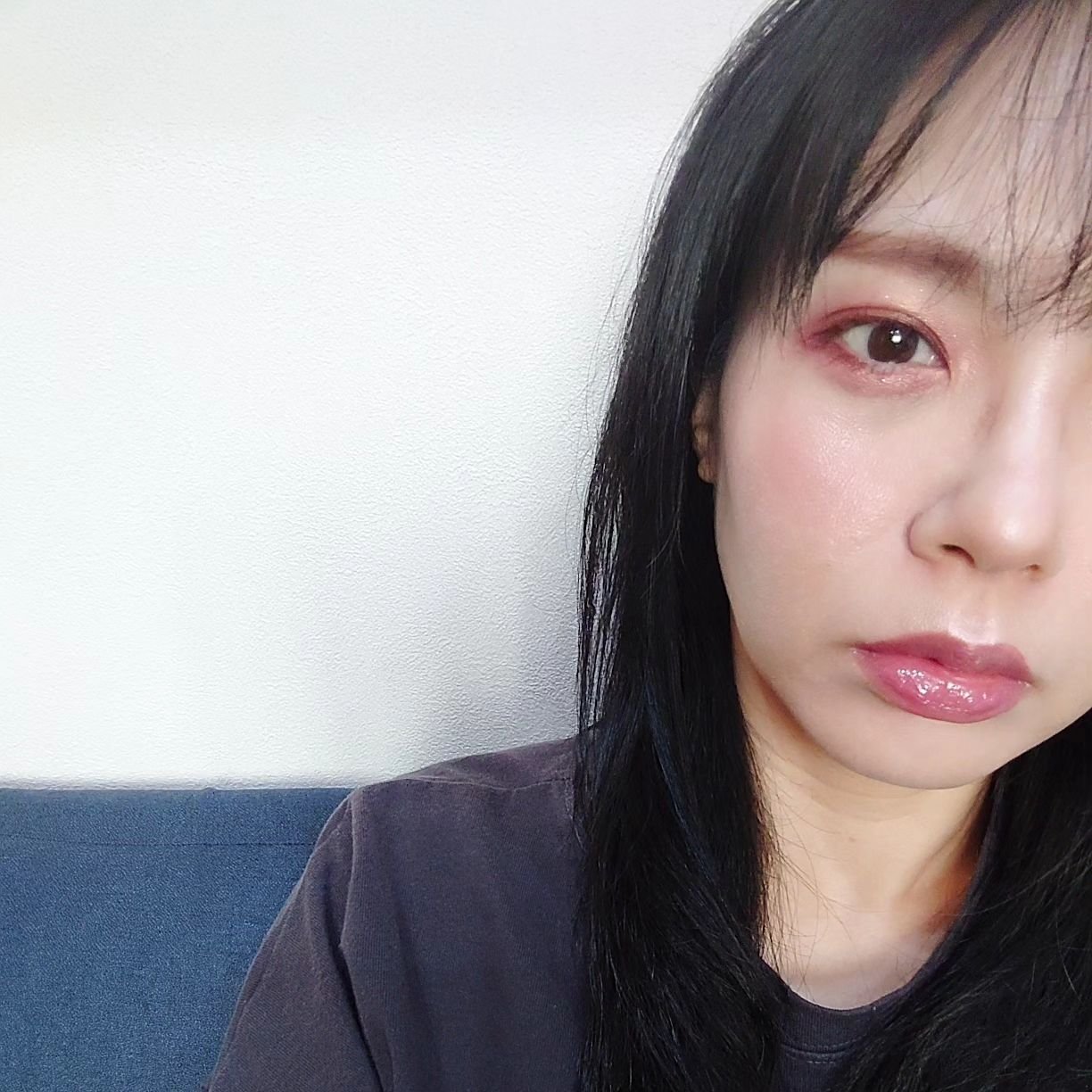 Kaleidosのラメ混じりの黒アイシャドウを使いました!めっちゃ濃いし良いこれ! 私的には深みが出るからafterの写真がお気に入り🖤 カラポのRipple、ベースがピンクなんだけどブルーラメが強めなの可愛かった🥺