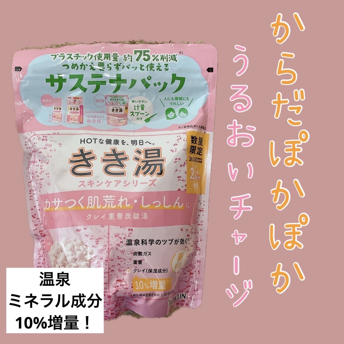 珍しい粒々の入浴剤❕「カサつく肌荒れ・しっしん」を緩和して、たまった疲労感をいやし、ラクにします😌 敏感肌な子供にも優しくて肌にしみたりもせずに使えます🛁 スプーンつきのサステナパックはチャックも簡単に閉めれて使いやすいし、使い終わったら丸めて小さく捨てれるのも👍良い❕