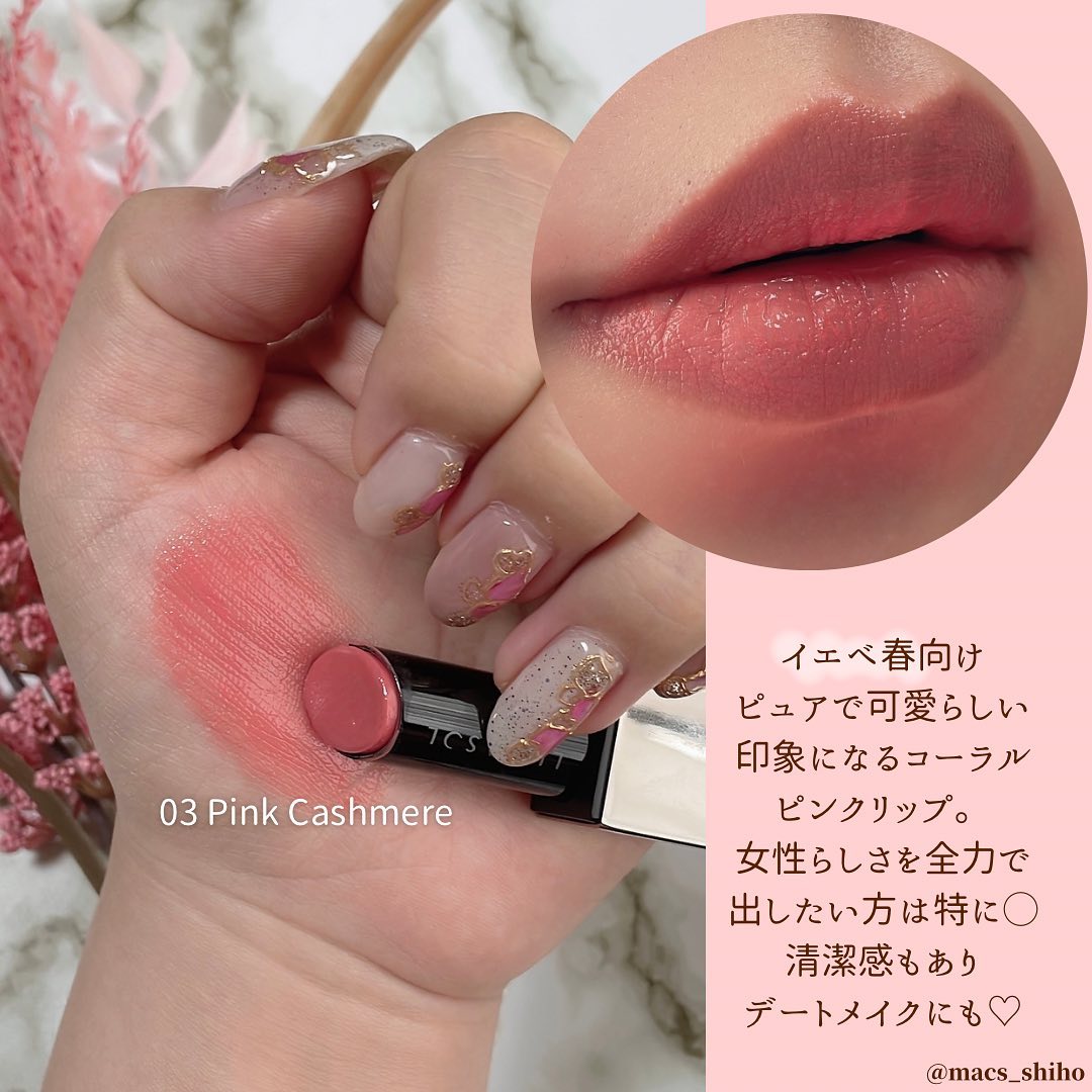 - <01 Low Gauge> オクチルドデカノール、水添ポリイソブテン、ラウロイルグルタミン酸ジ(フィトステリル/オクチルドデシル)、ヒドロキシステアリン酸エチルヘキシル、トリ(カプリル酸/カプリン酸)グリセリル、テトライソステアリン酸ジペンタエリスリチル、トリメチルペンタフェニルトリシロキサン、ビスジグリセリルポリアシルアジペート-2、パラフィン、イソノナン酸イソトリデシル、ラウロイルグルタミン酸ジ(オクチルドデシル/フィトステリル/ベヘニル)、合成ワックス、ジイソステアリン酸ポリグリセリル-2、マイクロクリスタリンワックス、水添マイクロクリスタリンワックス、トコフェロール、ホホバ種子油、シア脂、オリーブ果実油、アーモンド油、ダイマージリノール酸(フィトステリル/イソステアリル/セチル/ステアリル/ベヘニル)、水、(エチレン/プロピレン)コポリマー、ポリエチレン、ジメチコン、ヒアルロン酸Na、水溶性コラーゲン、(+/-)グンジョウ、シリカ、マイカ、ラウロイルアスパラギン酸Na、ラウロイルリシン、塩化亜鉛、酸化チタン、酸化鉄、水酸化Al、硫酸Ba、トリイソステアリン酸イソプロピルチタン、酸化スズ、ホウケイ酸(Ca/Al)、合成フルオロフロゴパイト、黄4、黄5、赤104(1)、赤201、赤202 <02 Autumn Orange> オクチルドデカノール、水添ポリイソブテン、ラウロイルグルタミン酸ジ(フィトステリル/オクチルドデシル)、ヒドロキシステアリン酸エチルヘキシル、トリ(カプリル酸/カプリン酸)グリセリル、テトライソステアリン酸ジペンタエリスリチル、トリメチルペンタフェニルトリシロキサン、ビスジグリセリルポリアシルアジペート-2、パラフィン、イソノナン酸イソトリデシル、ラウロイルグルタミン酸ジ(オクチルドデシル/フィトステリル/ベヘニル)、合成ワックス、ジイソステアリン酸ポリグリセリル-2、マイクロクリスタリンワックス、水添マイクロクリスタリンワックス、トコフェロール、ホホバ種子油、シア脂、オリーブ果実油、アーモンド油、ダイマージリノール酸(フィトステリル/イソステアリル/セチル/ステアリル/ベヘニル)、水、(エチレン/プロピレン)コポリマー、ポリエチレン、ジメチコン、ヒアルロン酸Na、水溶性コラーゲン、(+/-)グンジョウ、シリカ、マイカ、ラウロイルアスパラギン酸Na、ラウロイルリシン、塩化亜鉛、酸化チタン、酸化鉄、水酸化Al、硫酸Ba、トリイソステアリン酸イソプロピルチタン、酸化スズ、ホウケイ酸(Ca/Al)、合成フルオロフロゴパイト、黄4、黄5、赤104(1)、赤201、赤202 <03 Pink Cashmere> オクチルドデカノール、水添ポリイソブテン、ラウロイルグルタミン酸ジ(フィトステリル/オクチルドデシル)、ヒドロキシステアリン酸エチルヘキシル、トリ(カプリル酸/カプリン酸)グリセリル、テトライソステアリン酸ジペンタエリスリチル、トリメチルペンタフェニルトリシロキサン、ビスジグリセリルポリアシルアジペート-2、パラフィン、イソノナン酸イソトリデシル、ラウロイルグルタミン酸ジ(オクチルドデシル/フィトステリル/ベヘニル)、合成ワックス、ジイソステアリン酸ポリグリセリル-2、マイクロクリスタリンワックス、水添マイクロクリスタリンワックス、トコフェロール、ホホバ種子油、シア脂、オリーブ果実油、アーモンド油、ダイマージリノール酸(フィトステリル/イソステアリル/セチル/ステアリル/ベヘニル)、水、(エチレン/プロピレン)コポリマー、ポリエチレン、ジメチコン、ヒアルロン酸Na、水溶性コラーゲン、(+/-)グンジョウ、シリカ、マイカ、ラウロイルアスパラギン酸Na、ラウロイルリシン、塩化亜鉛、酸化チタン、酸化鉄、水酸化Al、硫酸Ba、トリイソステアリン酸イソプロピルチタン、酸化スズ、ホウケイ酸(Ca/Al)、合成フルオロフロゴパイト、黄4、黄5、赤104(1)、赤201、赤202 <04 Tangerine> オクチルドデカノール、水添ポリイソブテン、ラウロイルグルタミン酸ジ(フィトステリル/オクチルドデシル)、ヒドロキシステアリン酸エチルヘキシル、トリ(カプリル酸/カプリン酸)グリセリル、テトライソステアリン酸ジペンタエリスリチル、トリメチルペンタフェニルトリシロキサン、ビスジグリセリルポリアシルアジペート-2、パラフィン、イソノナン酸イソトリデシル、ラウロイルグルタミン酸ジ(オクチルドデシル/フィトステリル/ベヘニル)、合成ワックス、ジイソステアリン酸ポリグリセリル-2、マイクロクリスタリンワックス、水添マイクロクリスタリンワックス、トコフェロール、ホホバ種子油、シア脂、オリーブ果実油、アーモンド油、ダイマージリノール酸(フィトステリル/イソステアリル/セチル/ステアリル/ベヘニル)、水、(エチレン/プロピレン)コポリマー、ポリエチレン、ジメチコン、ヒアルロン酸Na、水溶性コラーゲン、(+/-)グンジョウ、シリカ、マイカ、ラウロイルアスパラギン酸Na、ラウロイルリシン、塩化亜鉛、酸化チタン、酸化鉄、水酸化Al、硫酸Ba、トリイソステアリン酸イソプロピルチタン、酸化スズ、ホウ