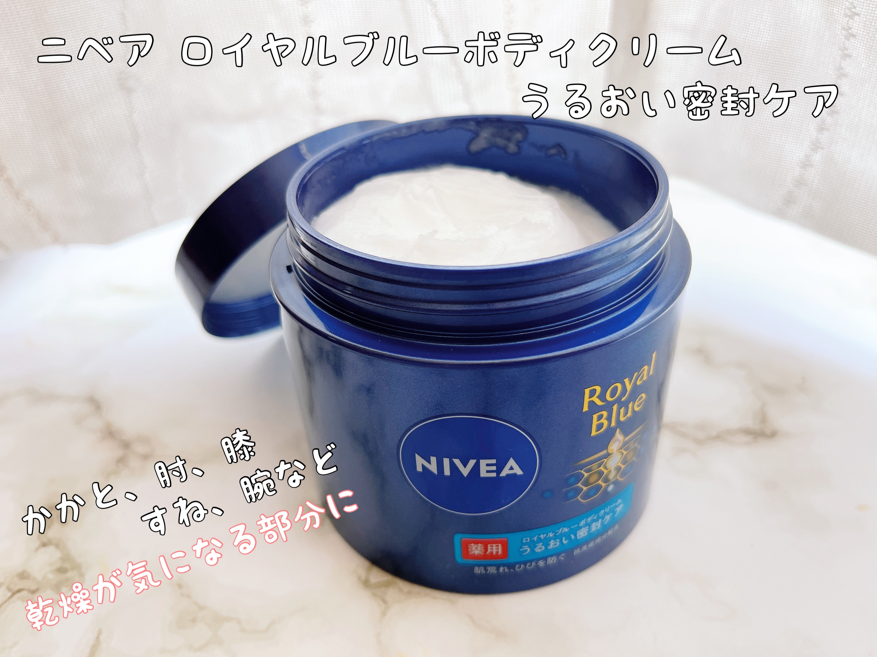 ニベアロイヤルブルーボディクリームうるおい密封ケア【医薬部外品】ニベア花王様から頂きました💕◎商品説明ふわっとした質感の濃厚クリームが、乾燥によりごわつき・かさつきがちな肌にすっととろけるようになじみ、肌荒れ、ひびを防ぎ、しっとりやわらかな肌...