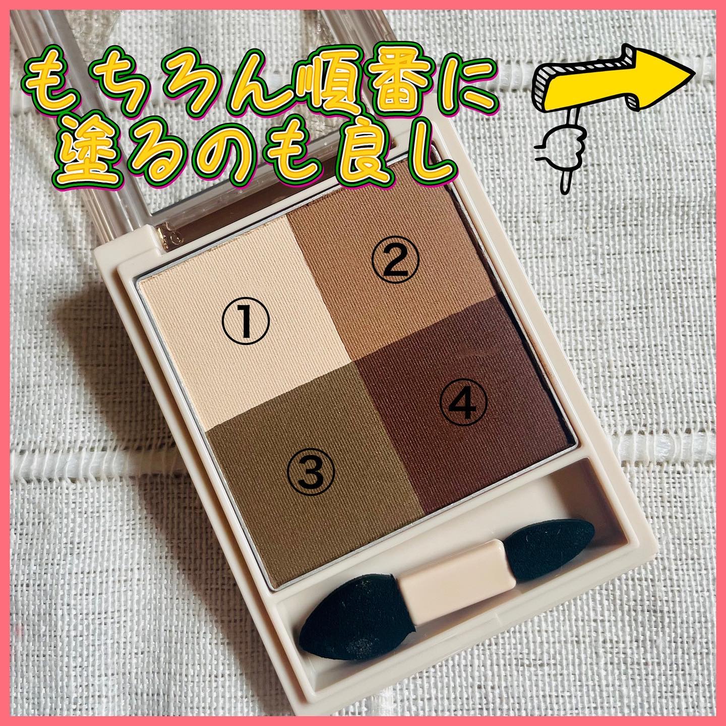 立体感と華やかさを演出 透け感のあるマットカラー プチプラ オフィスメイクに大活躍なお色です✨️ このシリーズいくつか持ってるけど、本当に使いやすいです🙆♀️🙆♀️🙆♀️ 付属のチップも程よい硬さで、まぶたにのせやすい🎶 気分に合わせてお色を変えるのもいいですよね😌♥️