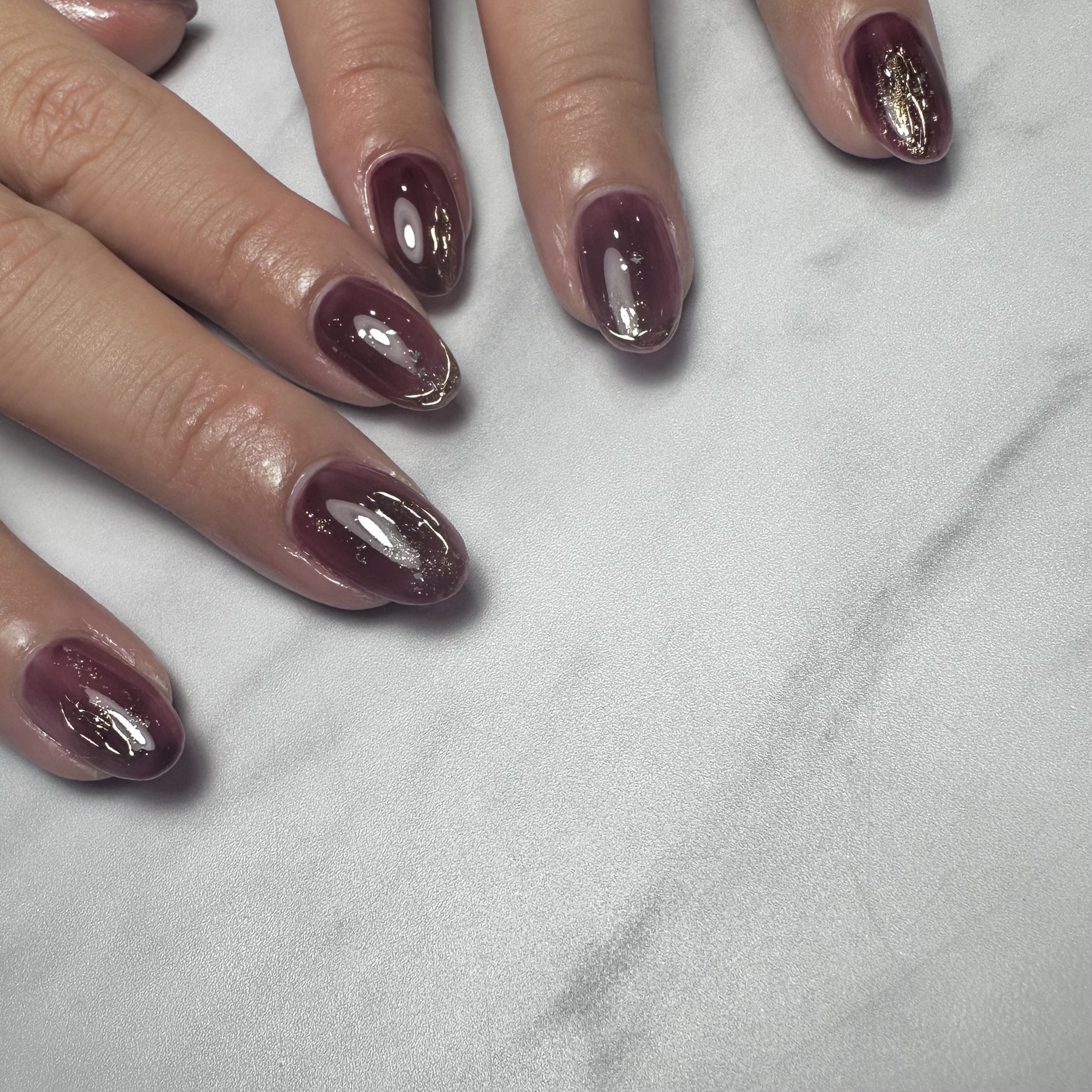 🍷秋と言えばボルドーだよねぇ🍷ボルドーネイル🍷🍒ベースにénoisy019を塗ってからMieureの栗梅(マグ)を塗ったらめちゃくちゃ可愛くなりました🥺🫶🏼栗梅はブラウンマグなんだけど1度塗りだと発色薄いのでシロップカラーのボルドーをベースカ...