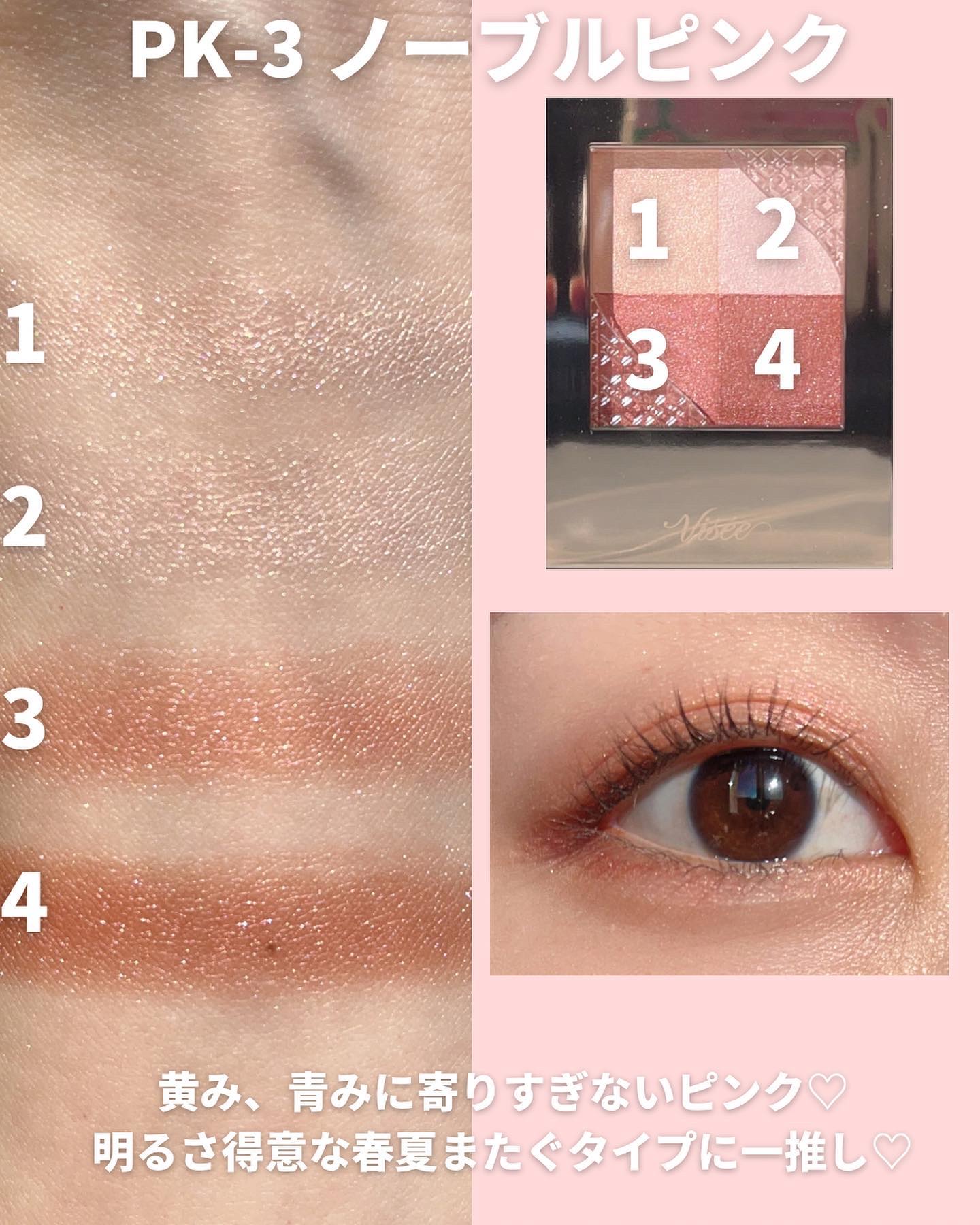 ルナソルのピンクはラメ感控えめなのでオフィスメイクにおすすめ🙆🏻♀️✨ CHANELはかなり万能だと思っていて、柔らかく仕上げればイエベ春の私ももちろんハマるし✨ ブランドごとにもちろん特徴がありますし、ピンクといってもパレットによって仕上がりはさまざま!
