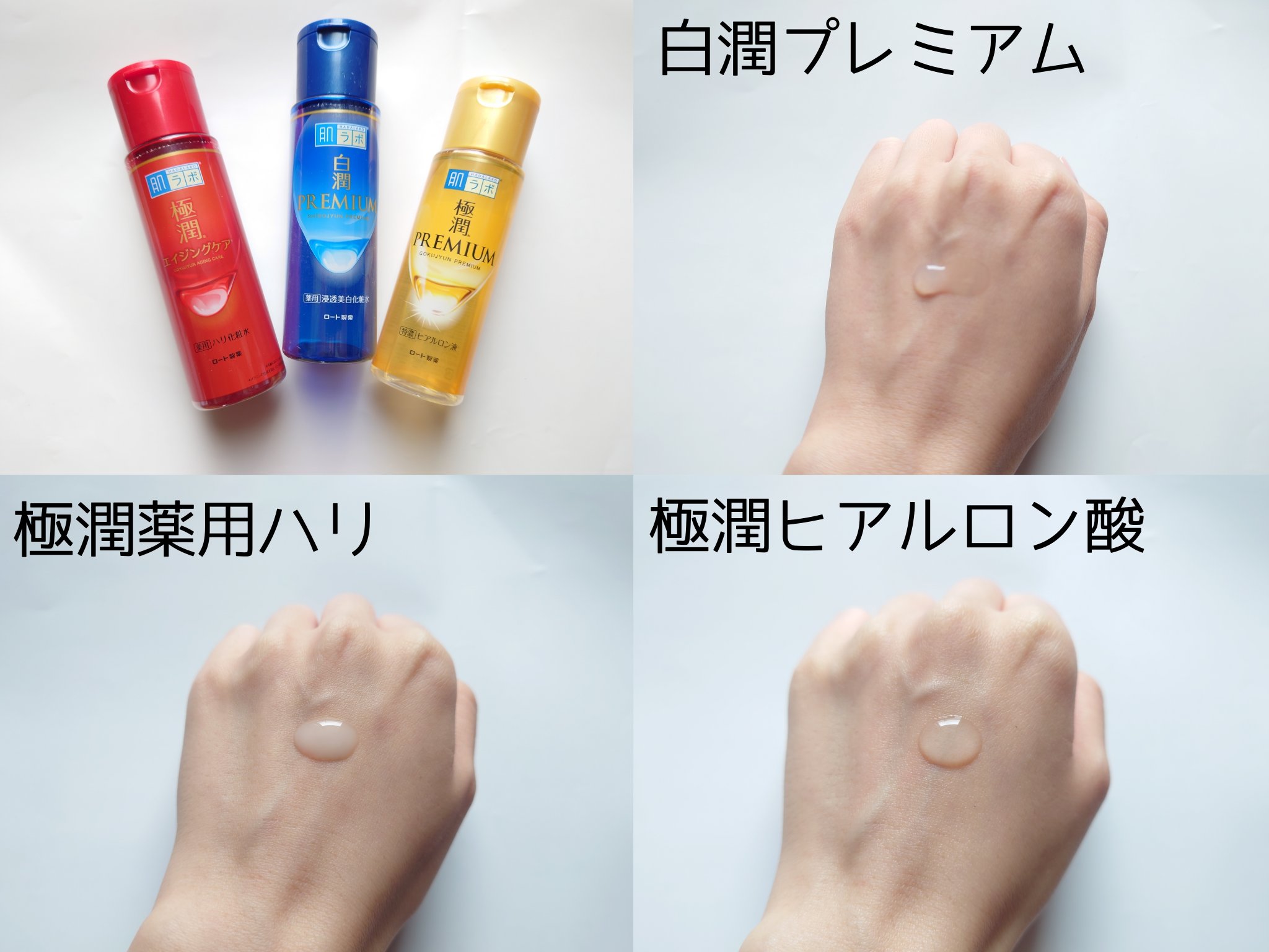 白潤プレミアムは敏感肌の私も使いやすく美白ケアのできる化粧水なのでお気に入り❤️🔥 極潤プレミアムヒアルロン液が1番しっとりしていて保湿力が高くて好きでした!乾燥がひどい時に使いたいのはこれ一択! 全種類アルコールフリーなのが個人的に嬉しいです♡香料が苦手で無香料なのも使いやすくて好きです!