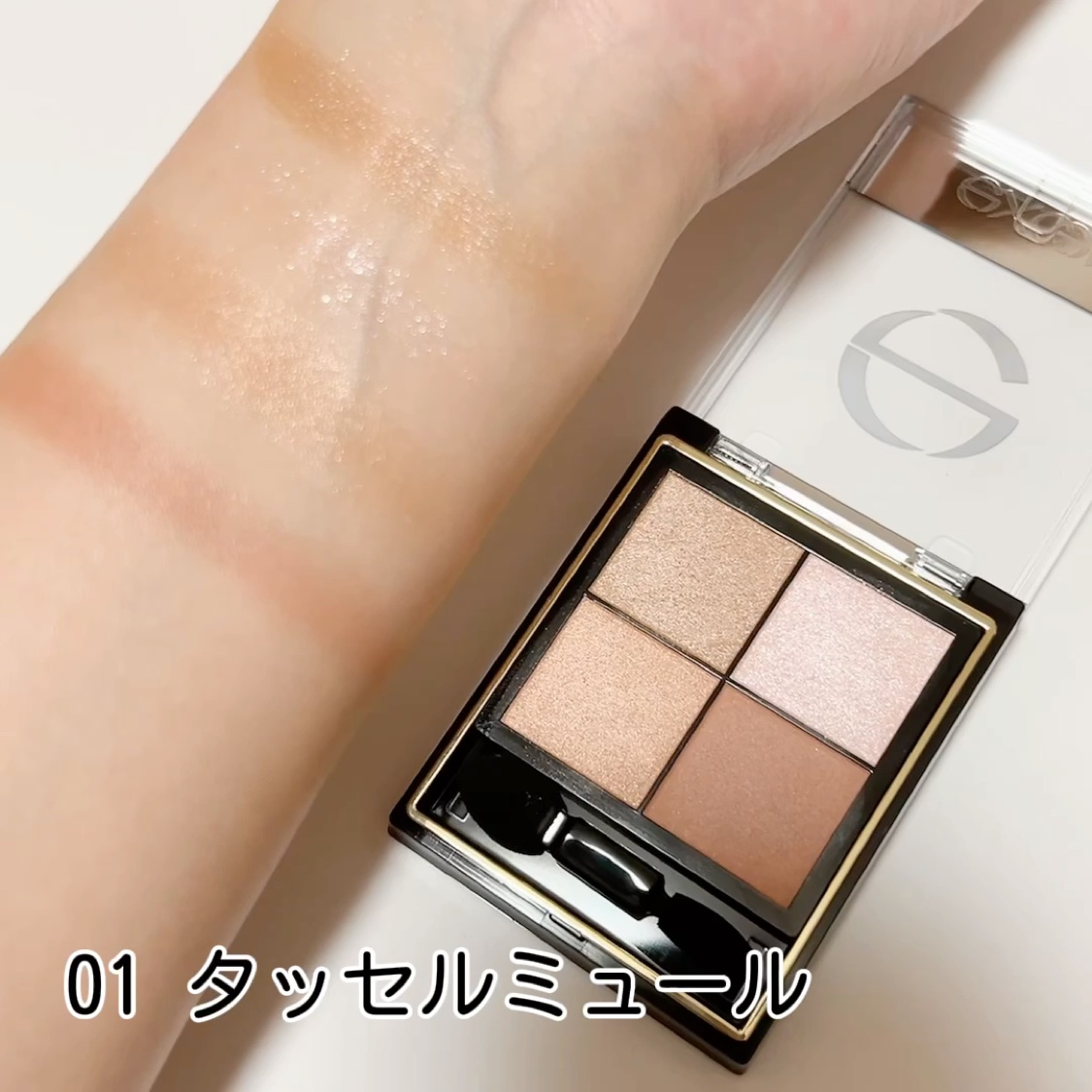 - 1.重ねてもくすまないクリアな発色。ナチュラルに溶け合う絶妙4カラー。 ツヤタイプ(左上・左下カラー):アイホール全体にぼかしたり、目尻へのポイント使いも。 ラメタイプ(右上カラー):アイホール中心や下まぶたにきらめきのアクセント。 マットタイプ(右下カラー):単色で陰影を付けたり、ツヤタイプと重ねてニュアンスをプラス。 2.うっとりするほどリッチな質感で粉飛びしないのに、軽いタッチで伸びて重ねやすいテクスチャー。 3.スクワラン(保湿)配合で目元の乾燥を防ぎます。 [PERFORMANCE] 色と質感の重ね着を楽しむ、ファッション感覚アイシャドウパレット [DESIGN] ・まぶたにひっかからない、なめらかな上質チップ ・薄型コンパクトだからポーチの中でかさばらない [QUALITY] 1.重ねてもくすまないクリアな発色 ナチュラルに溶け合う絶妙4カラー 2.パールの重ね技でまぶたに極上のツヤ感 微細多色 カラーパール 銀コーティング ガラスパール* excel GOLD-MIX処方(金パール配合)* (*右上のシャイニーカラーのみ) 3.うっとりするほどリッチな質感で粉飛び知らず!なのに、軽いタッチで伸びて重ねやすい 4.スクワラン(保湿)配合で目元の乾燥を防ぐ