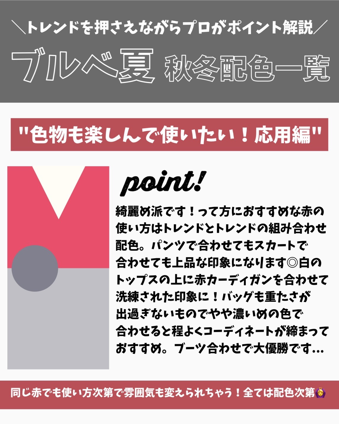 あゆみみです🩷パーソナルカラーやコスメの耳より👂🏻な情報を16タイプ・パーソナルカラーアナリスト®のプロの視点からご紹介していきます!...本日は【パーソナルカラー仕分けファッション配色ブルベ冬】についてお話ししていきます🌸✼••┈┈••✼•...