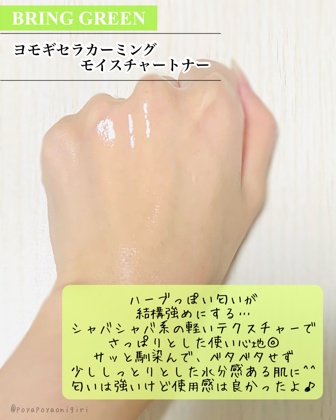 とろ〜っとした水分感あるテクスチャー🫧 草っぽい?いい香りがふんわり☘️ 保湿感あるけど、重たくなくさっぱりな使用感なのが良かったです🫶 こっくりとしたやわらかいテクスチャー🫧 草の香りが少ししました☘️ 重たくなく、しっとり水分感ある肌へ💫 どっちもさっぱり水分感ある感じで使い心地がよく、夏にも使いやすそうなアイテムでした🙌