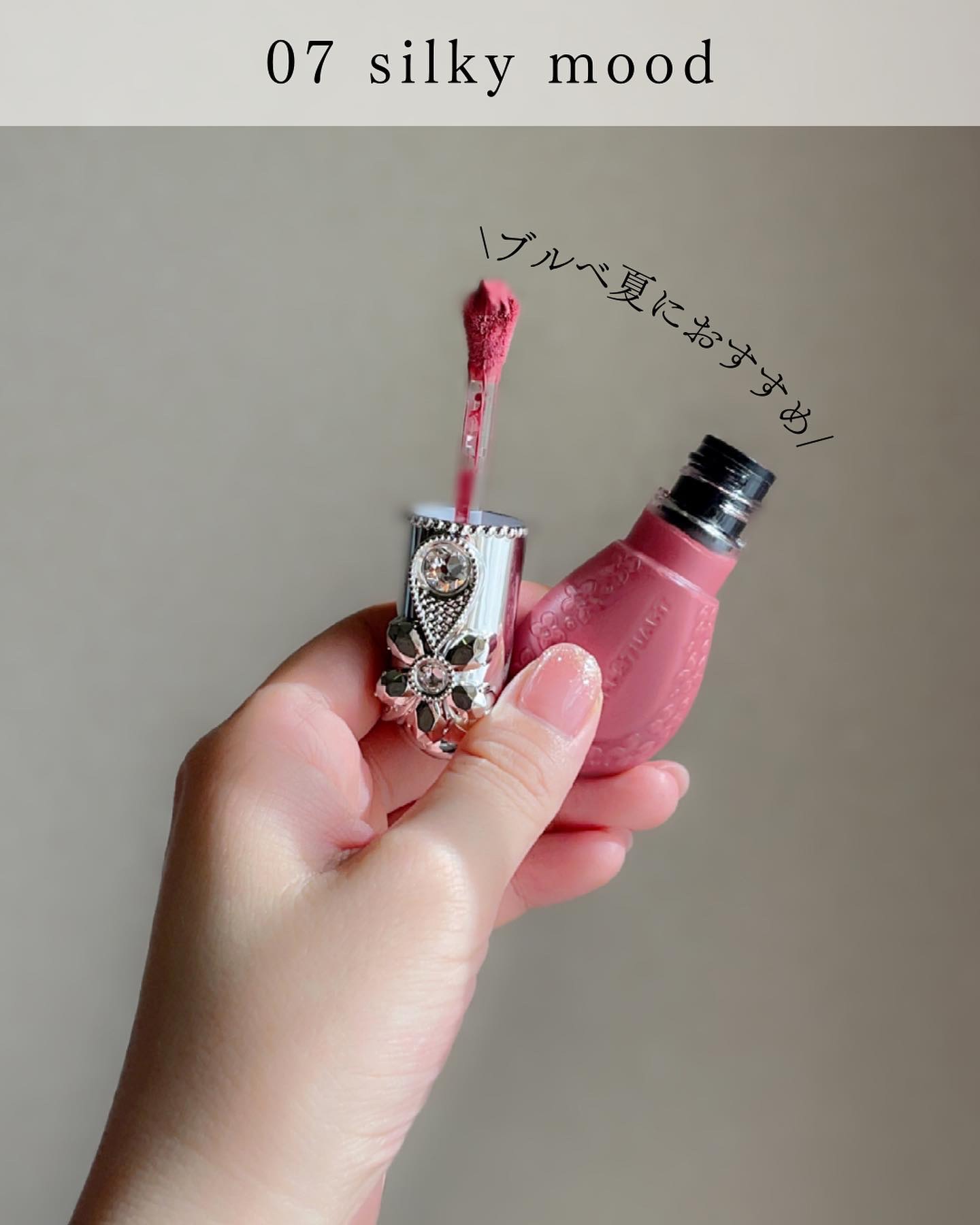 むっちむちでちゅるんとした唇に仕上がります! 色はわりとしっかりめに付くので、顔タイプフェミニン(大人顔)の私でも色が薄い!ということにはなりませんでした。 クリアウィンターの私が特にお気に入りなのは05です♡ 発色も良く、唇の縦皺も気にならないので見栄えが良い…! 診断後に何買えばいいかな?と迷っている人はこのリップを候補に入れてあげてください💄