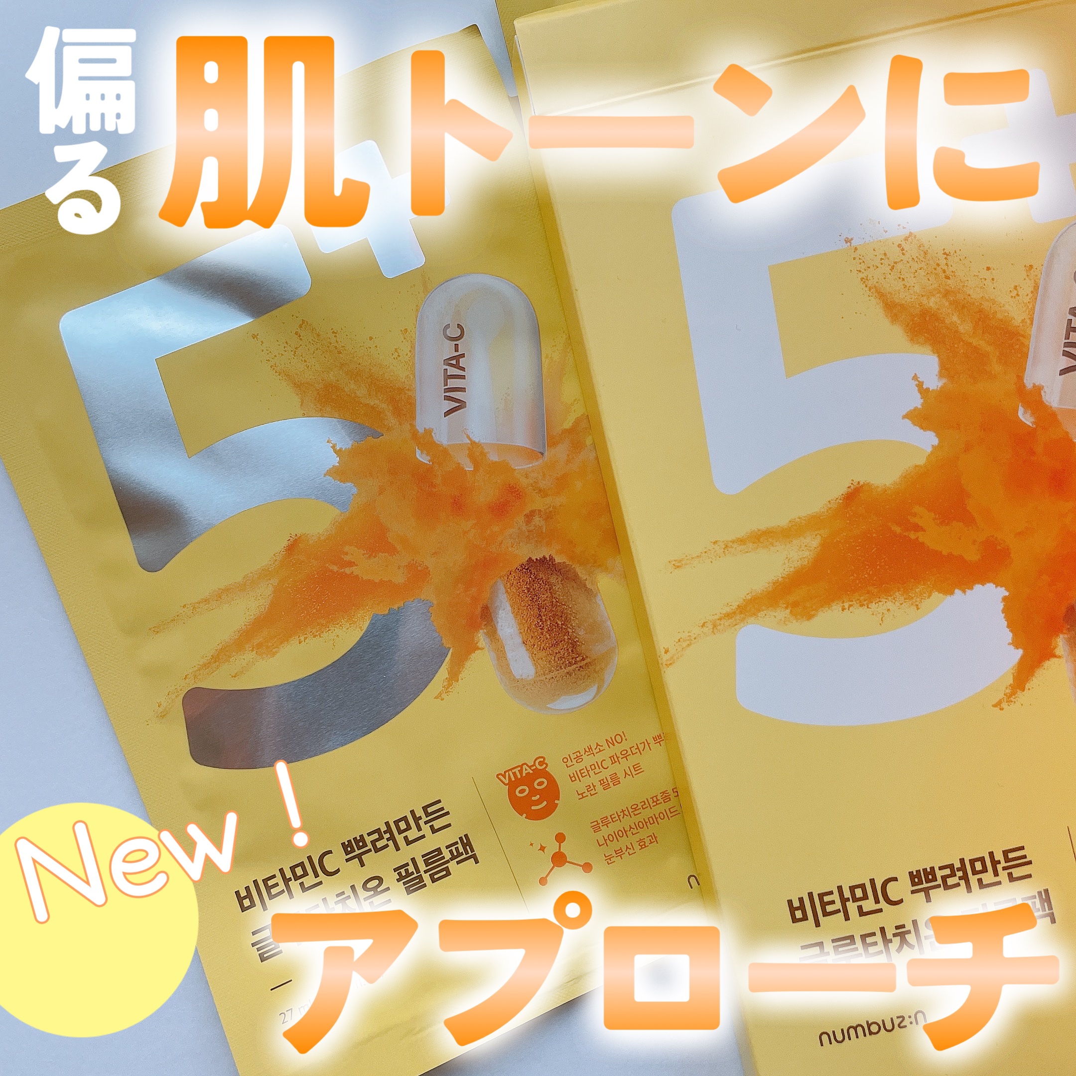 - ※2025年8月以降、商品パッケージ順次リニューアル。尚、これにかかる商品の返品・交換は承っておりません。 顔全面に隙間なく照明ON!ビタミンC*1をふりかけた黄色いシートに高濃縮グルタチオンC*1美容液を入れ込んだ、くすみ*2集中ケアシートマスク *1整肌成分 *2乾燥によるもの