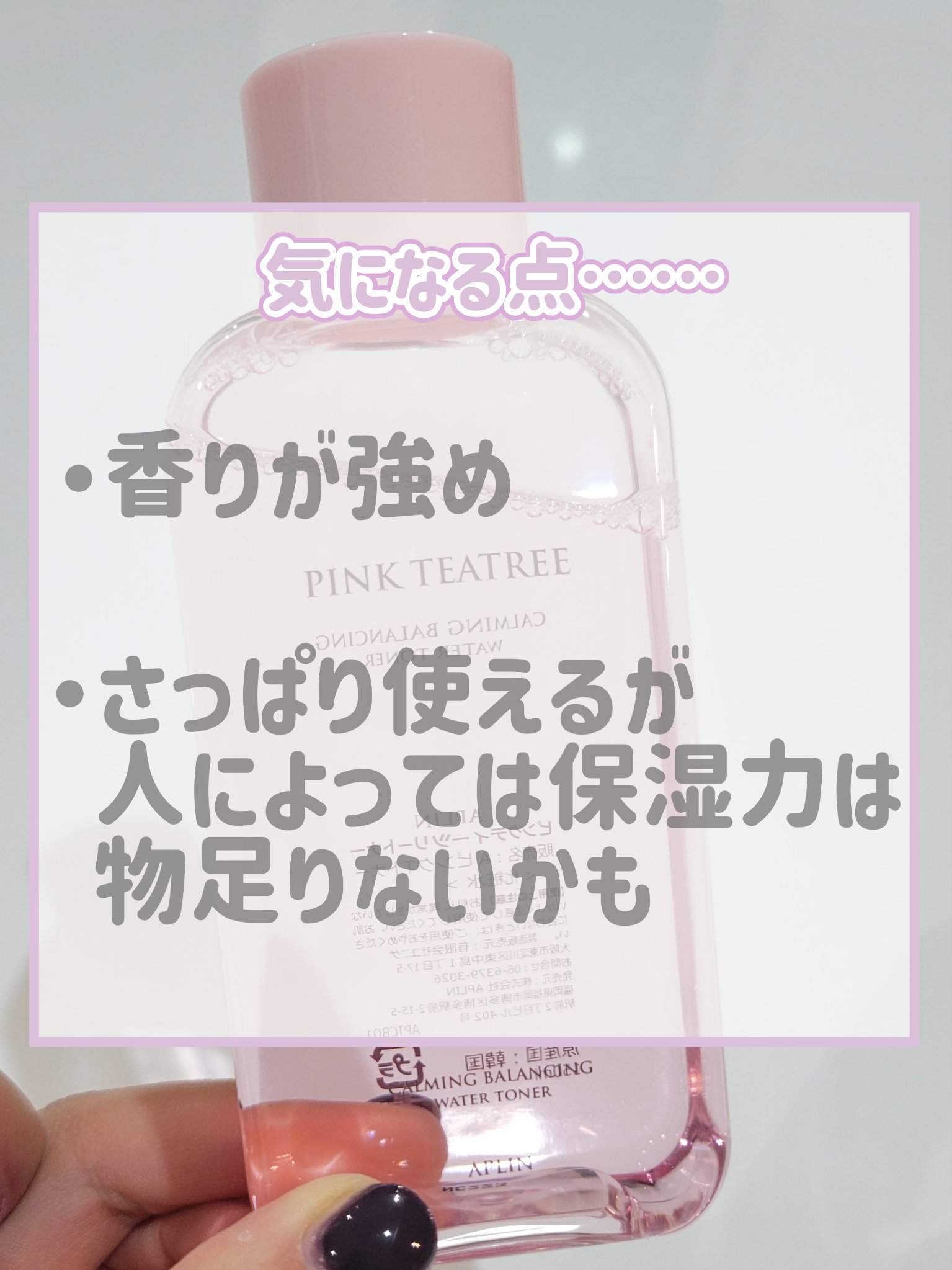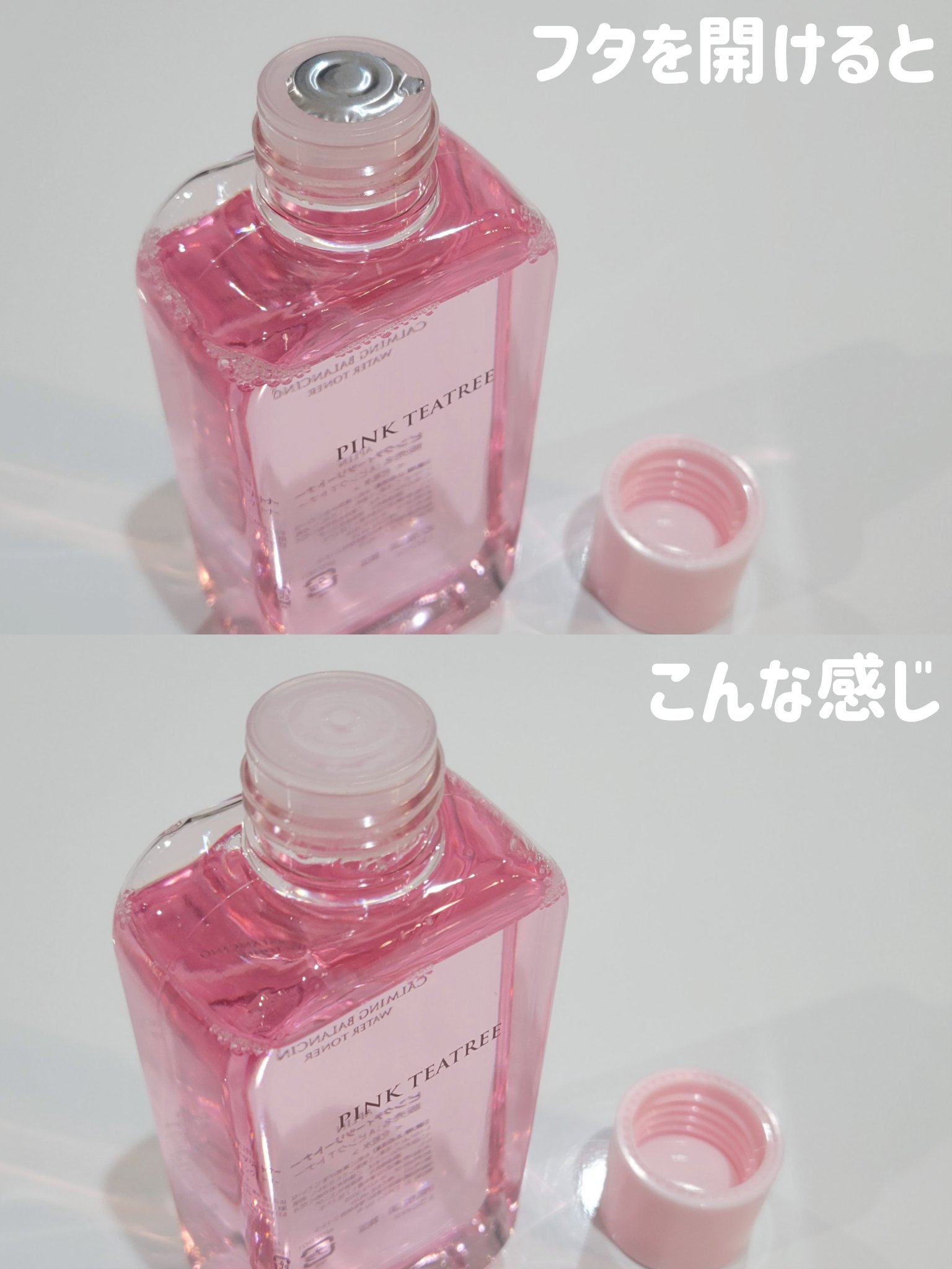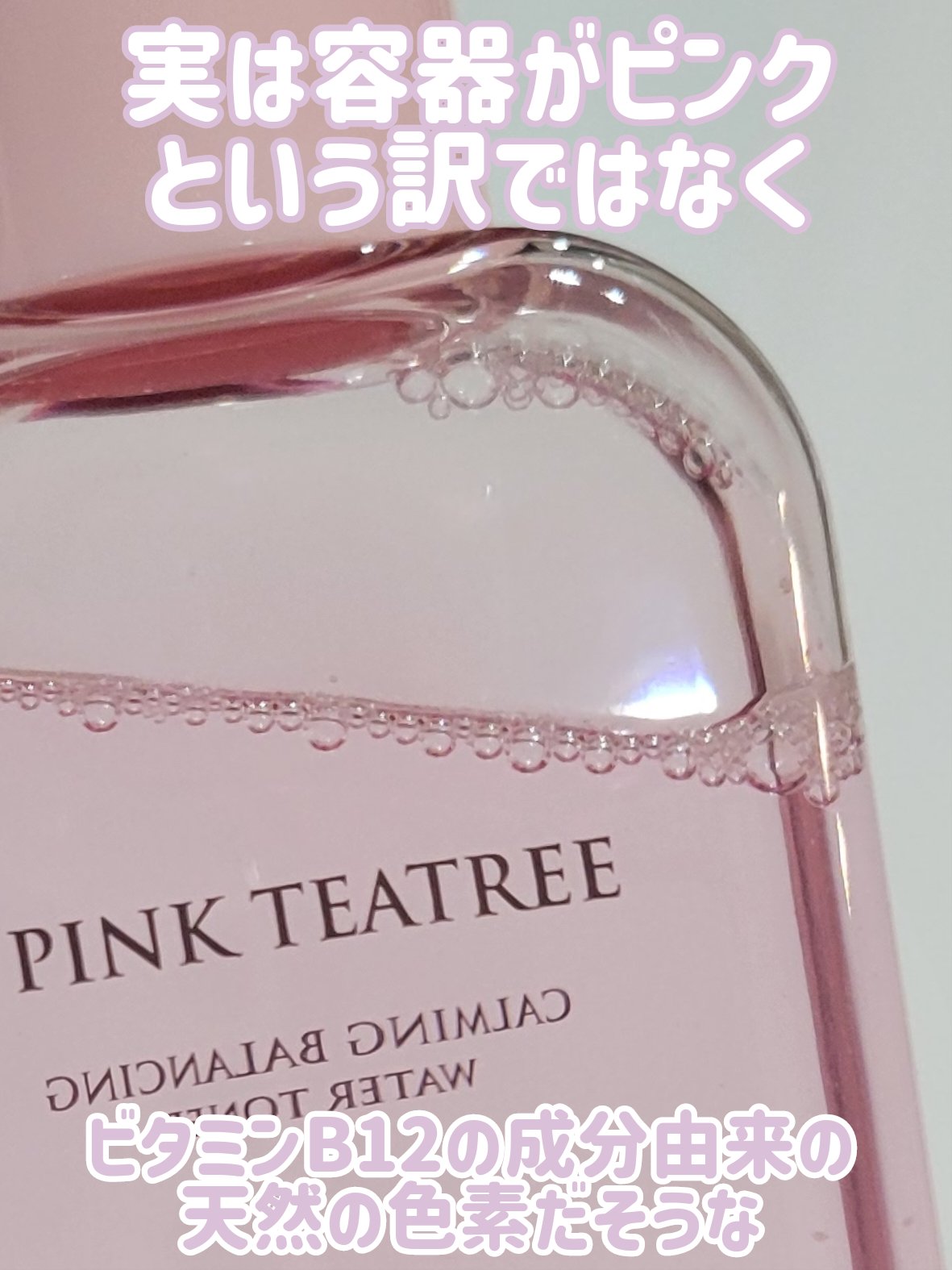 ティーツリーや、シカエキスを配合でニキビ、肌荒れ悩みをケアしてくれるトナー🩷 ピンク色は自然成分「ビタミンB12」本来の色だそう✨ サラサラテクスチャーで、さっぱりした使い心地✨