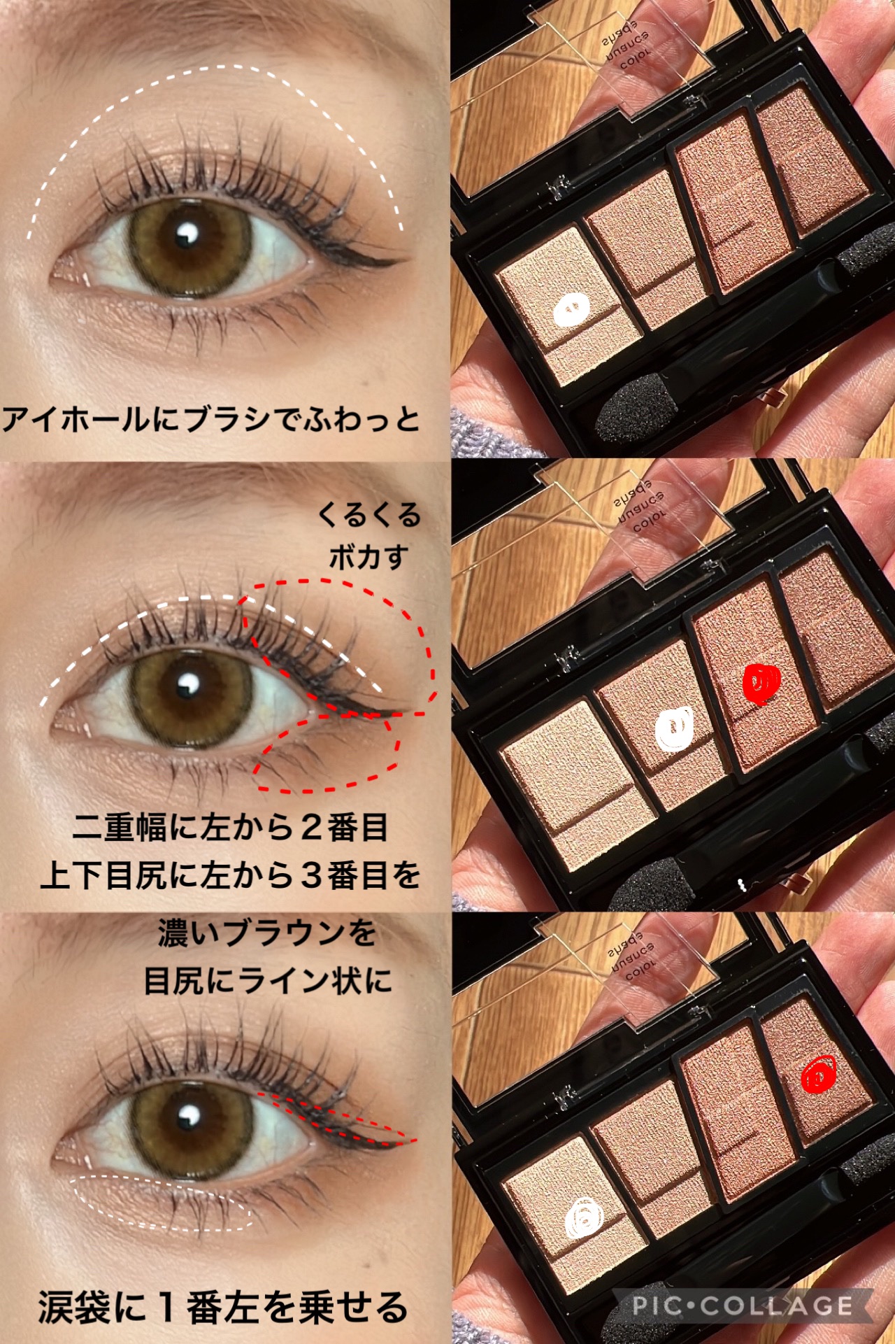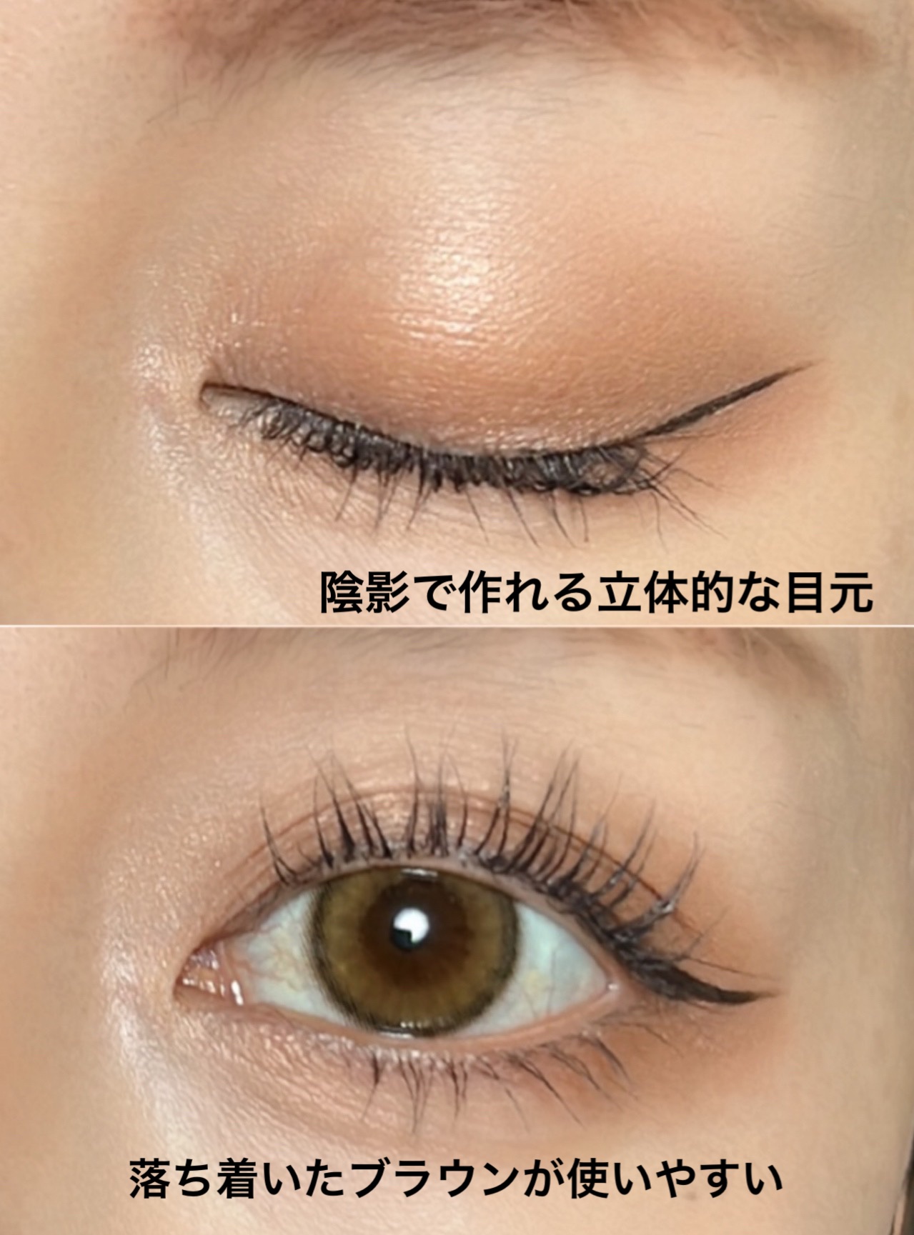 - カラーニュアンスシェードを目尻に入れるだけで目幅を大きく見せ※、抜け感のある明るい大きな目元に仕上るブラウンアイシャドウ。 ブラウン×カラーニュアンスの4色セット。※メイクアップ効果
