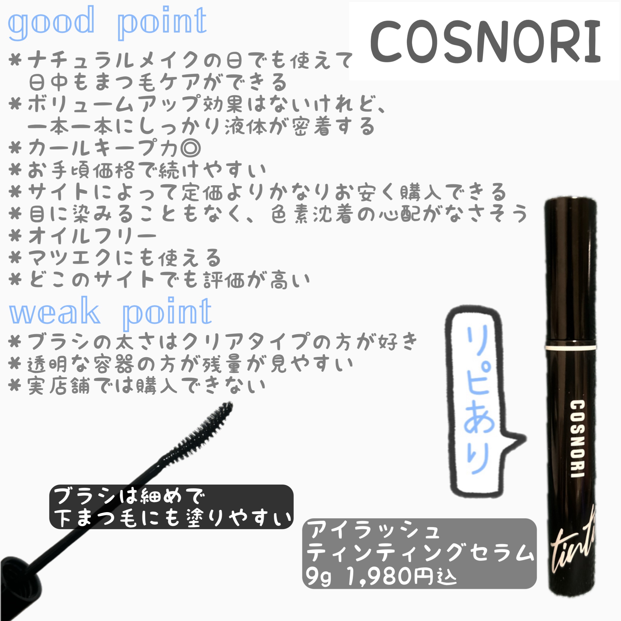 COSNORI コスノリ アイラッシュティンティングセラム | 1,650円 |