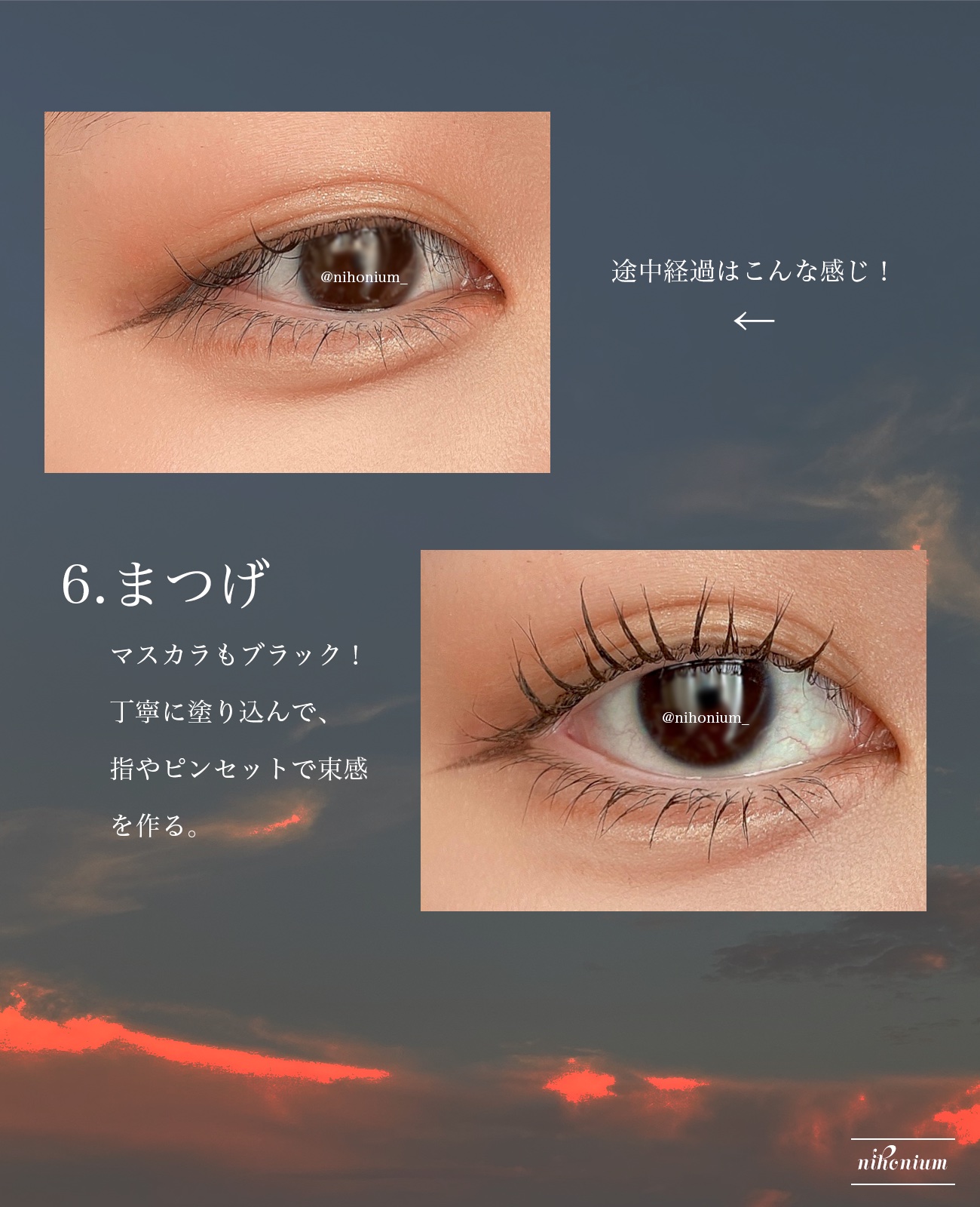 アイメイク半顔比較丸目に見せるかわいい系アイシャドウの塗り方CLIOプロアイパレットエアー10シーズンプラム上まぶたmakeベースカラーをアイホールと下まぶた全体にトントン塗り⇽こうすることでベースが綺麗に乗る!丸目に見えるように目頭と目尻に...