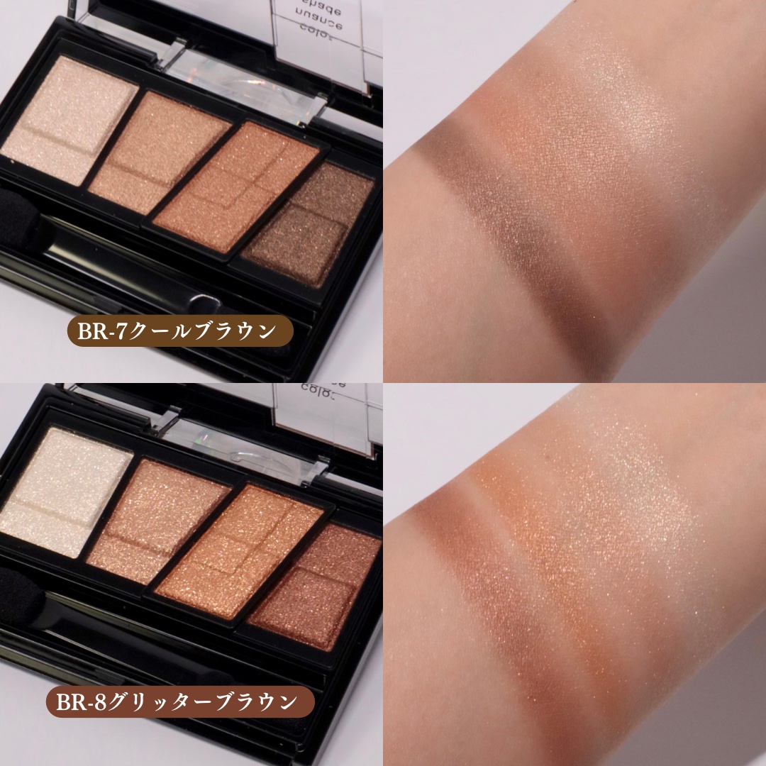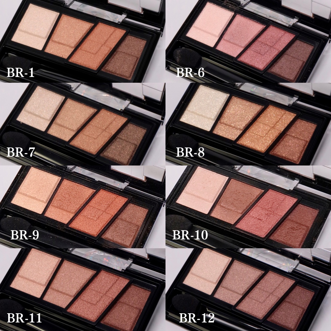 - カラーニュアンスシェードを目尻に入れるだけで目幅を大きく見せ※、抜け感のある明るい大きな目元に仕上るブラウンアイシャドウ。 ブラウン×カラーニュアンスの4色セット。※メイクアップ効果
