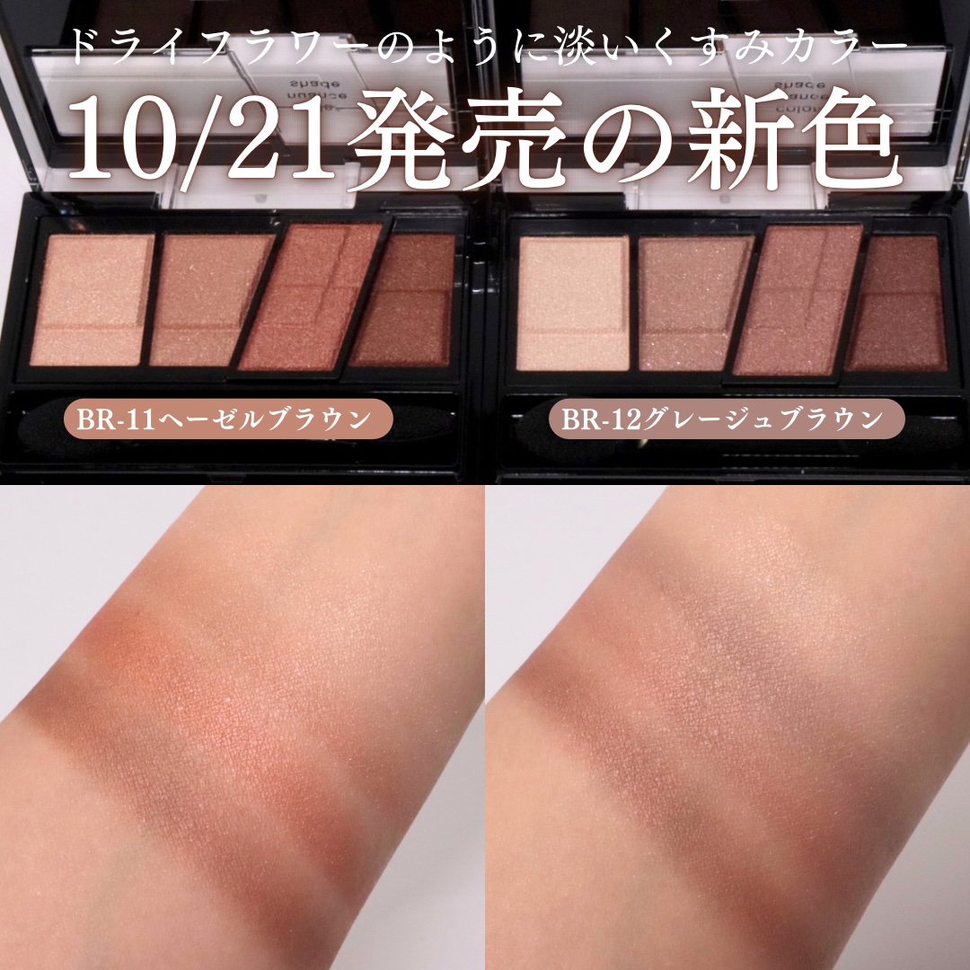 肌に溶け込むようなブラウン設計 透けブラウン×繊細パールで、軽やかに引き立つ、大きな目もと印象へ。 重ねてもくすまず、肌に溶け込むような #とけ艶ブラウンシャドウ どれも発色が良くて 思ったままの色って感じかな?