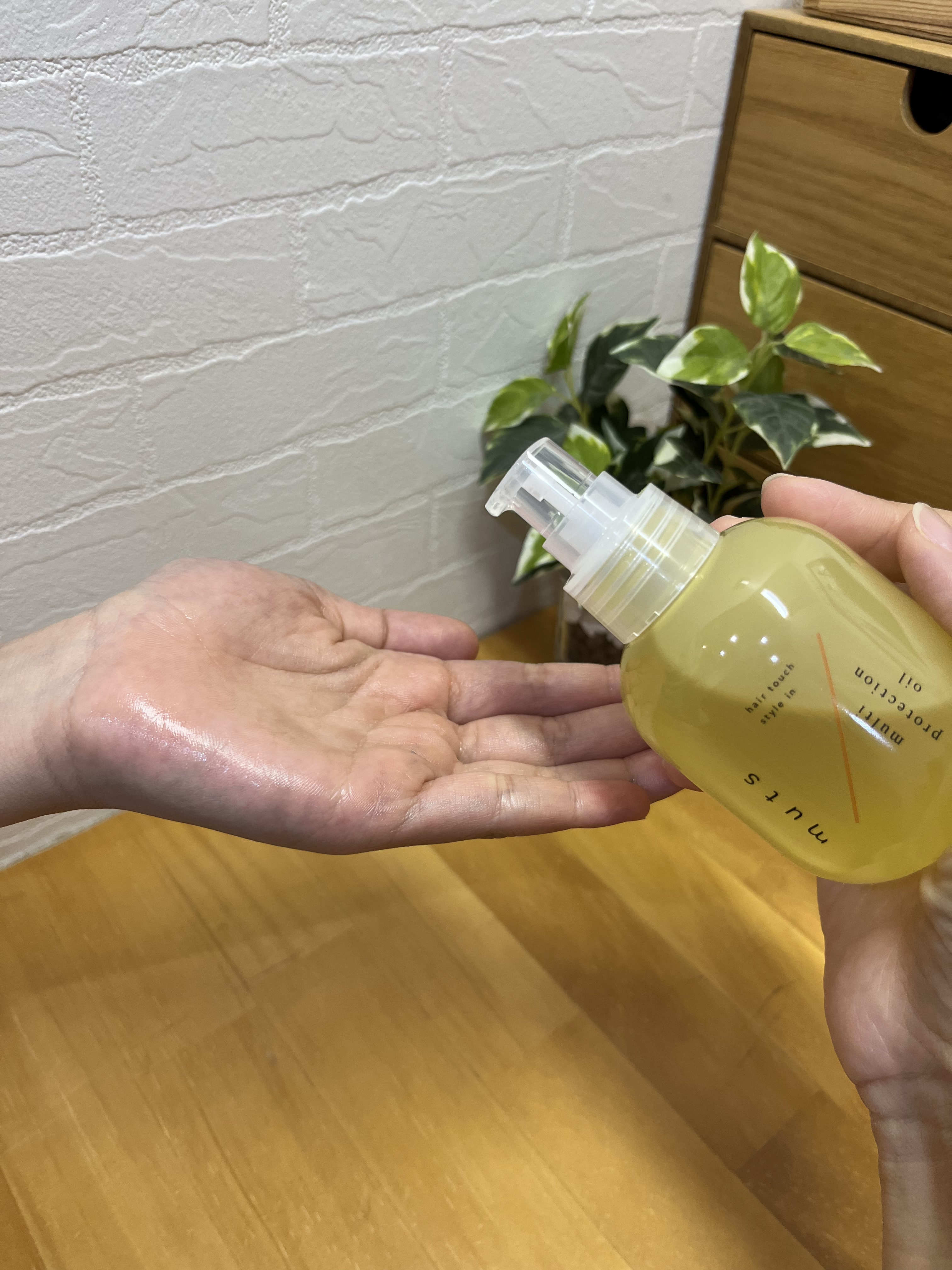 とにかくベタつかず使いやすい!! サラサラのオイルで柑橘系の優しい香り 夏場は顔まわりの髪の毛がベタっとしがちだけどこれはなんだかいい感じに…! 私はかなり広がる毛質だから毛先はプッシュ量多めで使っているよ! 簡単に括っただけでもツヤっぽいだけで垢抜ける気がするお気に入りのオイルです