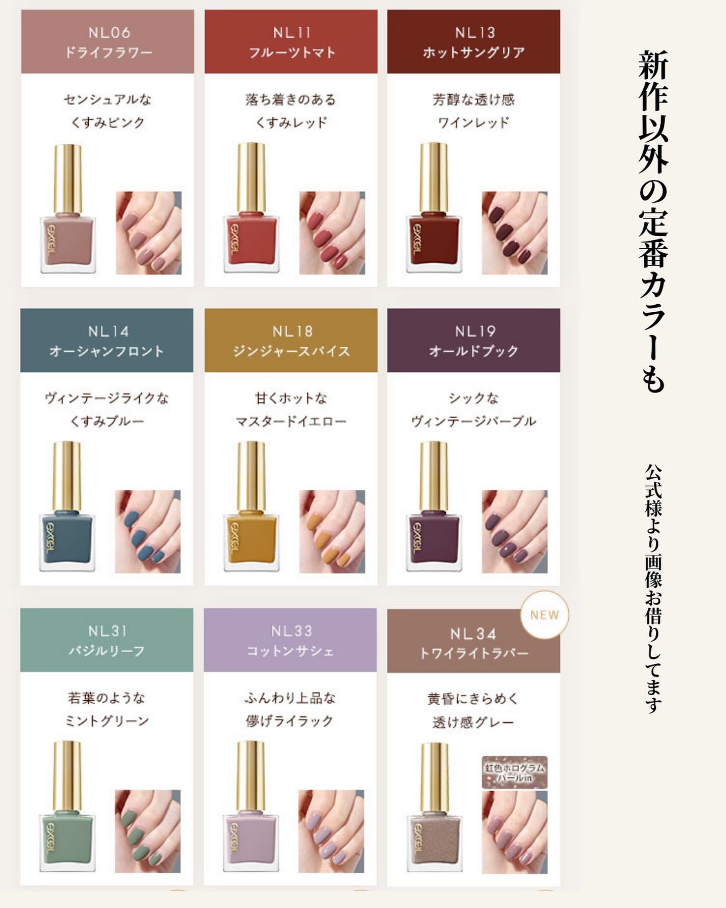 以前excelさまのキャンペーンに当選していただきました。ネイルポリッシュNNL14オーシャンフロントNL18ジンジャースパイス◯NL14オーシャンフロントヴィンテージライクなくすみブルーお洒落で涼しげな色♡1度塗りだとムラになったので、2〜...