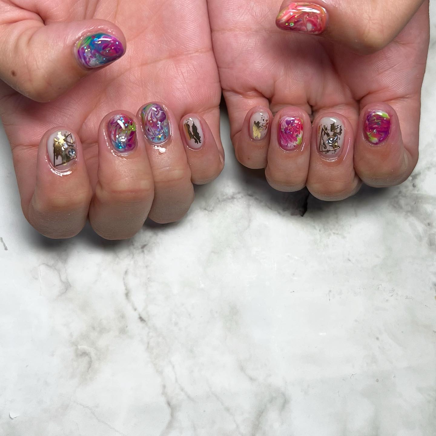 こちらおまかせでさせていただいたネイルです💅💅💅💅看板メニューのおまかせコースです❤️❤️❤️✼••┈┈••✼••┈┈••✼••┈┈••✼••┈┈••✼#glitter#silvernails#glitternails#unicorn#ネイル...
