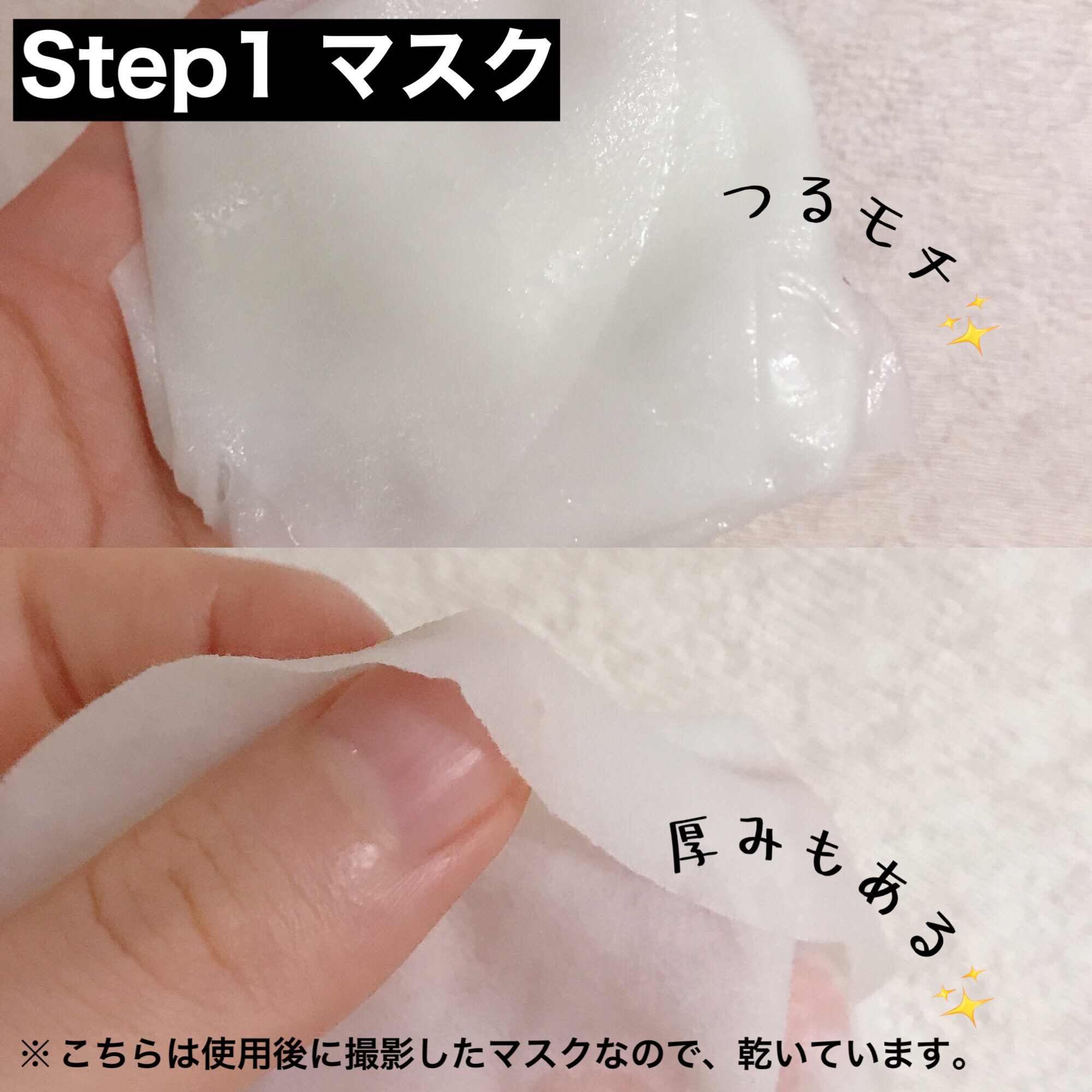 使う直前に混ぜる2層式シートマスク・1枚に美容液1本分(30ml)をぎゅっと配合!ツヤめくもちもち全方位多幸感肌へ✨️ 自分で混ぜて作るマスク、楽しい~!!まさに「スペシャルケア」なアイテム。デート前など特別な日に使いたくなります✨️ はがしたあとは「クリームとか必要ないんじゃないかな?」と思うぐらいの仕上がりでしたが、その後は好みの美容液やクリームを使うことを推奨されているので私もしっかりたっぷりケアしました💗