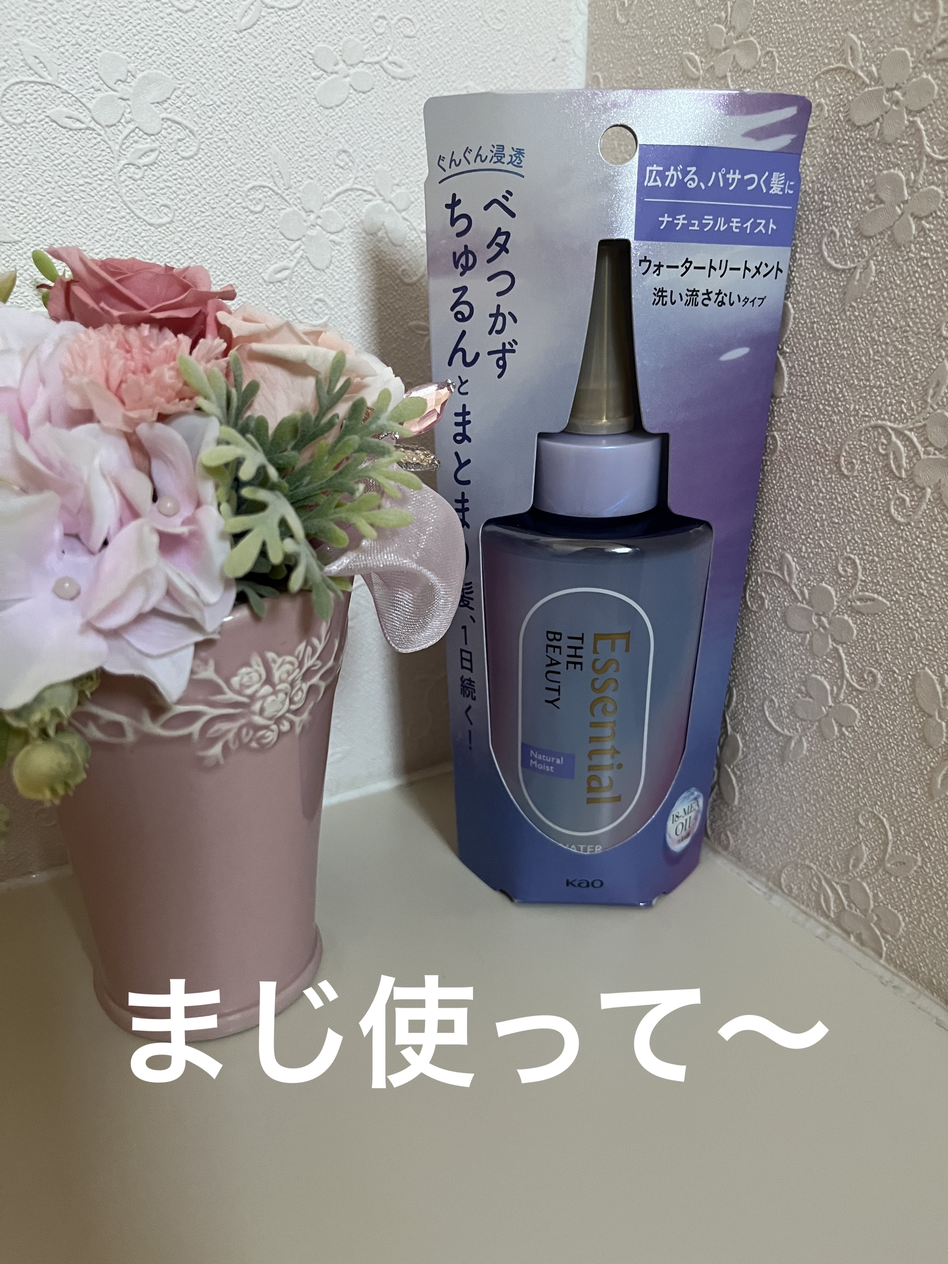 タオルドライした濡れた髪にセミロングヘアで500円玉3~4個分出して髪につけたて乾かしたら感動するほどサラサラでまとまるし髪がトゥルトゥル♡ 試した事ない人ほんと1回でいいから試して欲しいくらい髪がトゥルトゥルになって感動する✨ #ウォータートリートメント #エッセンシャル #プレミアムウォーター#エッセンシャルプレミアムウォータートリートメント