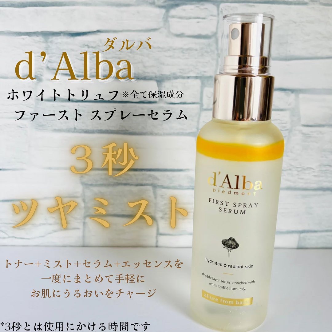 d’alba🤍ダルバ#PRホワイトトリュフファーストスプレーセラム100ml/¥2420-(税込)1本目使い切り!💛このスプレーみんな使ってる?🤤🩵韓国のSNSで「3秒ツヤミスト*」の愛称でバズったミスト!*3秒とは使用にかける時間です毎日の...
