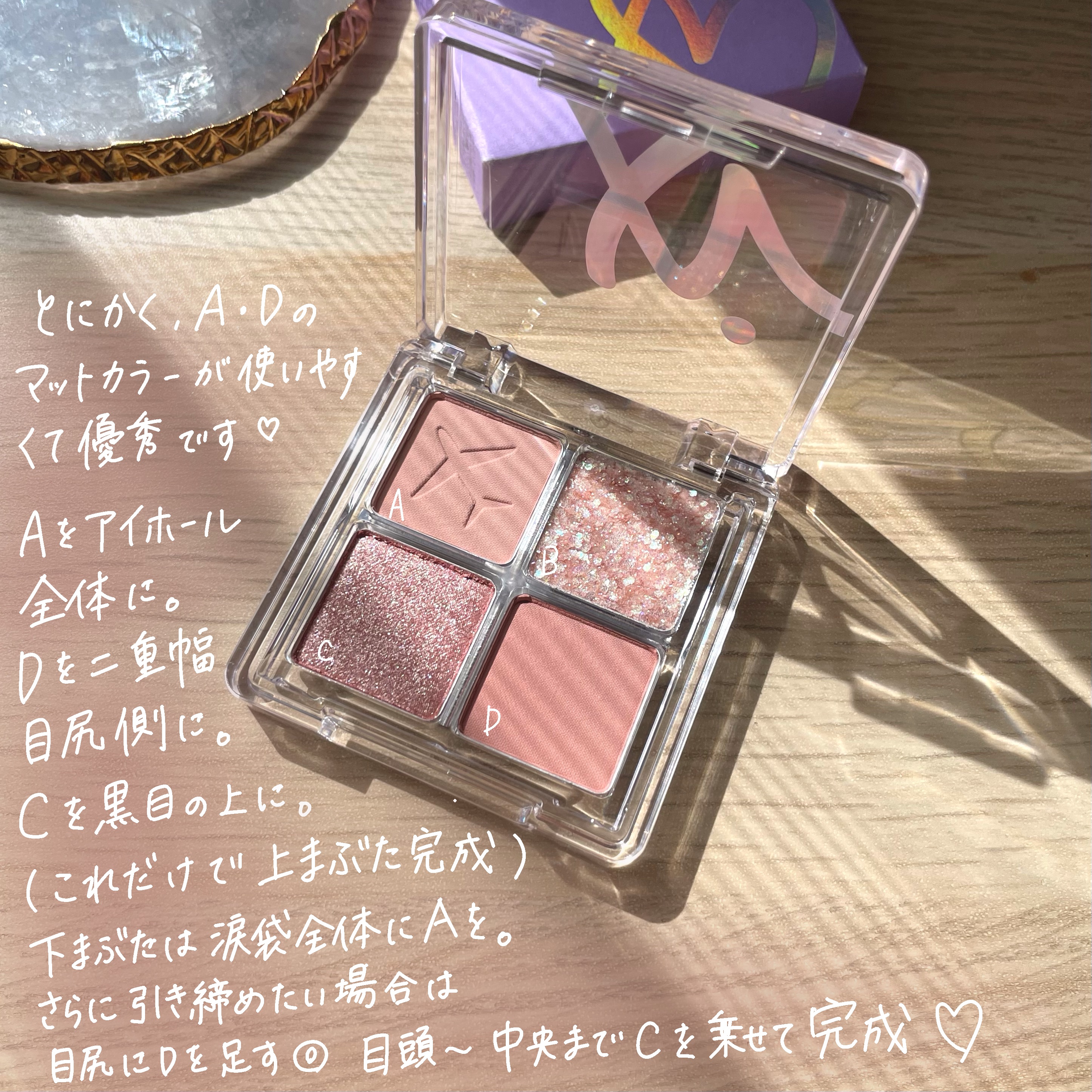 | アイシャドウパレットランキング第8位 | 時間が経っても キッラキラな艶・ラメ感が続く。 色がくすんだりも気にならないし 塗ったあとに何回も鏡見てしまう | 詳細を見る |