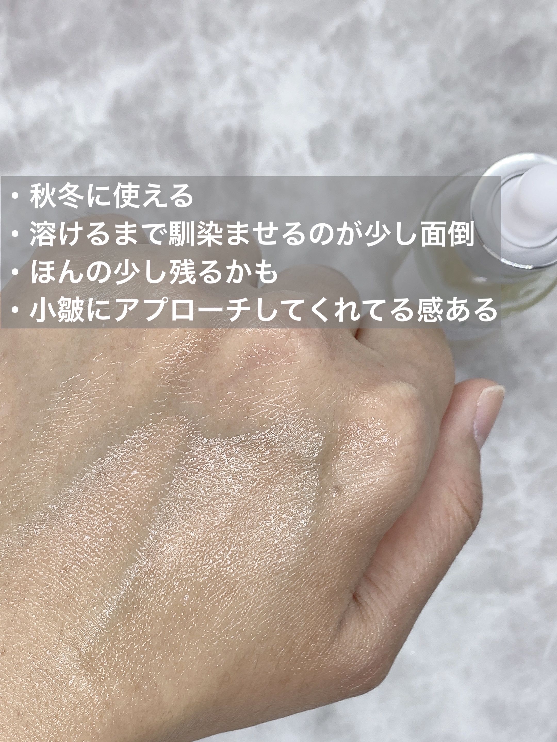 | 馴染ませるとさらっとします!朝になっておくと水分チャージできるので乾燥することも減りました! | 詳細を見る |