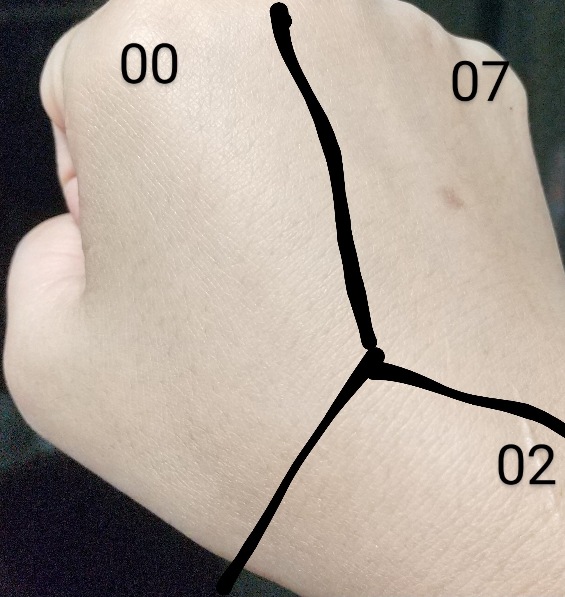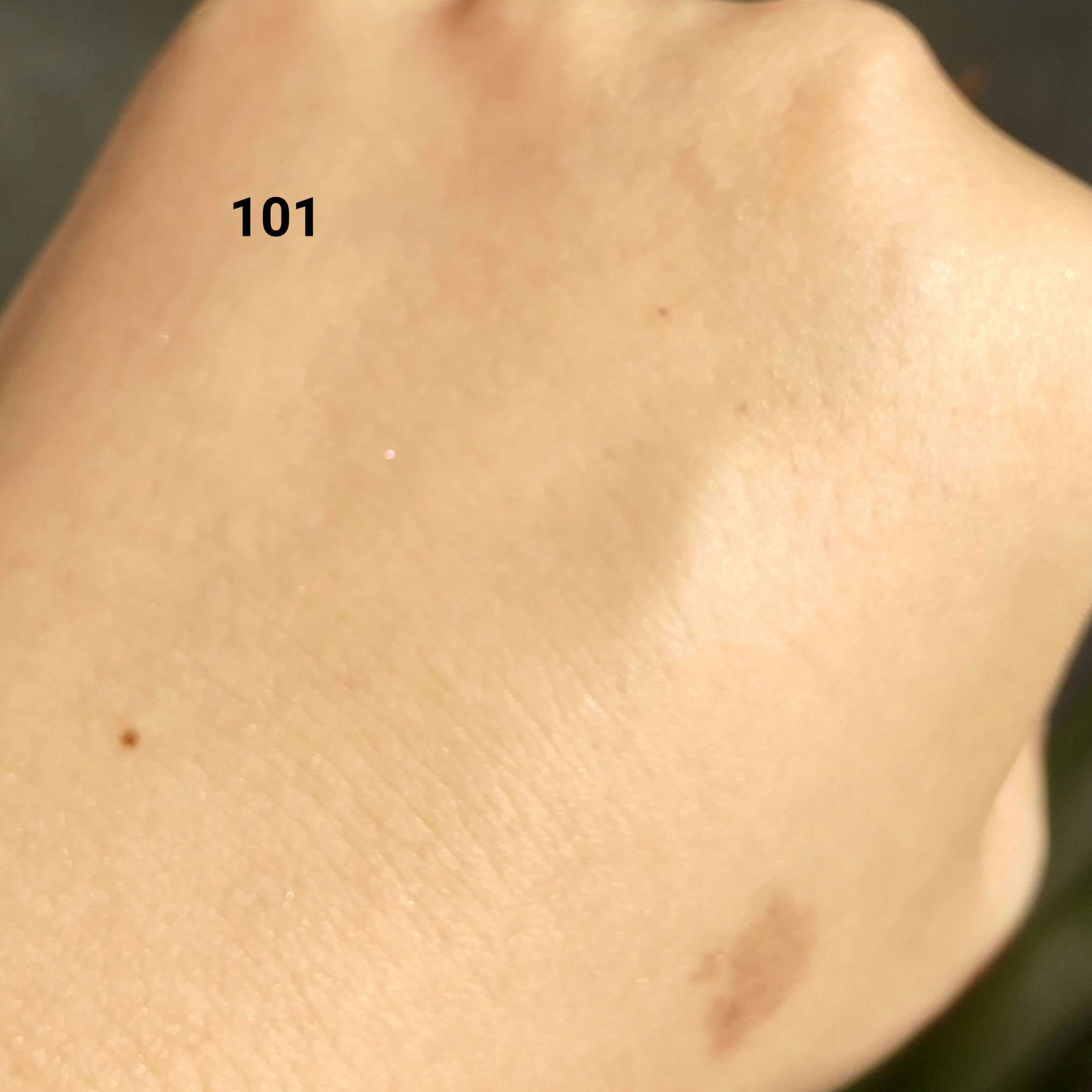 左上、左下、真ん中上、真ん中下、右上、右下という順番でスウォッチしてみました。 出してみると商品の写真より肌にのせたほうがくすみが出るかな✨という印象です😌 伸ばしやすくて指でも筆でもつけやすいです☺️💕 とっても可愛いカラーなのでオススメです💠