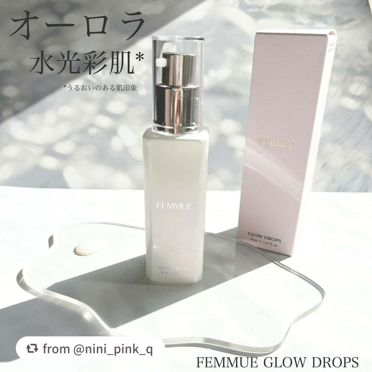 - オーロラのような輝きを放つ水光彩肌へ。 磨きがかかったFEMMUE のベストセラー美容液「グロウドロップス」。 肌に必要なうるおいで満たし、発光するかのような輝きとハリを携える「水光彩肌セラム」。 オイルと水分のバランスを追求した美容液成分がパワーアップし、日々のダメージ*1から守り、バリア機能をサポートする機能をプラス。 すべての成分を特殊技術でミクロな均一構造にすることで、肌のすみずみ*2までうるおいで満たします。 容器も、使いやすいポンプタイムへ。 バウンスするようなハリとみずみずしい透明感*3を、ご自身の肌でご体感ください。 *1 日焼け等の外的環境 *2 角質層まで *3 うるおいを与えて透明感をもたらす
