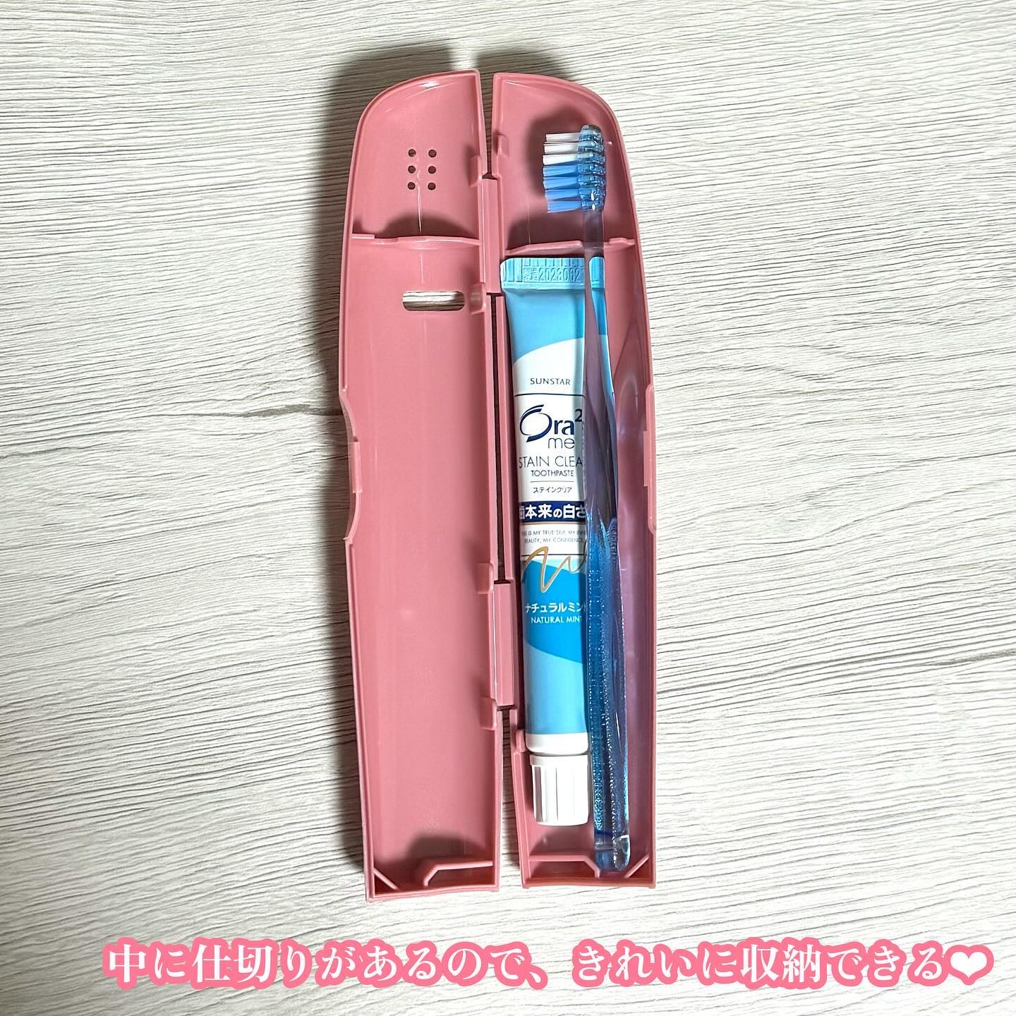 - ①人目を気にせず持ち運べる、中身が見えないスタイリッシュなデザインのケースでブルー・ホワイト・ピンクに新色パープルを加えた4色のカラー展開です。 ②小さなバッグにも入れやすいスリムでコンパクトなケースです。 ③ケースは抗菌加工されており、通気性も良く、衛生的です。 ④オーラツーミー ハブラシ ステインクリア(ふつう)とオーラツーミー ステインクリアペースト[ナチュラルミント]20g(医薬部外品)との組み合わせです。 ※2025年9月上旬〜パッケージリニューアル
