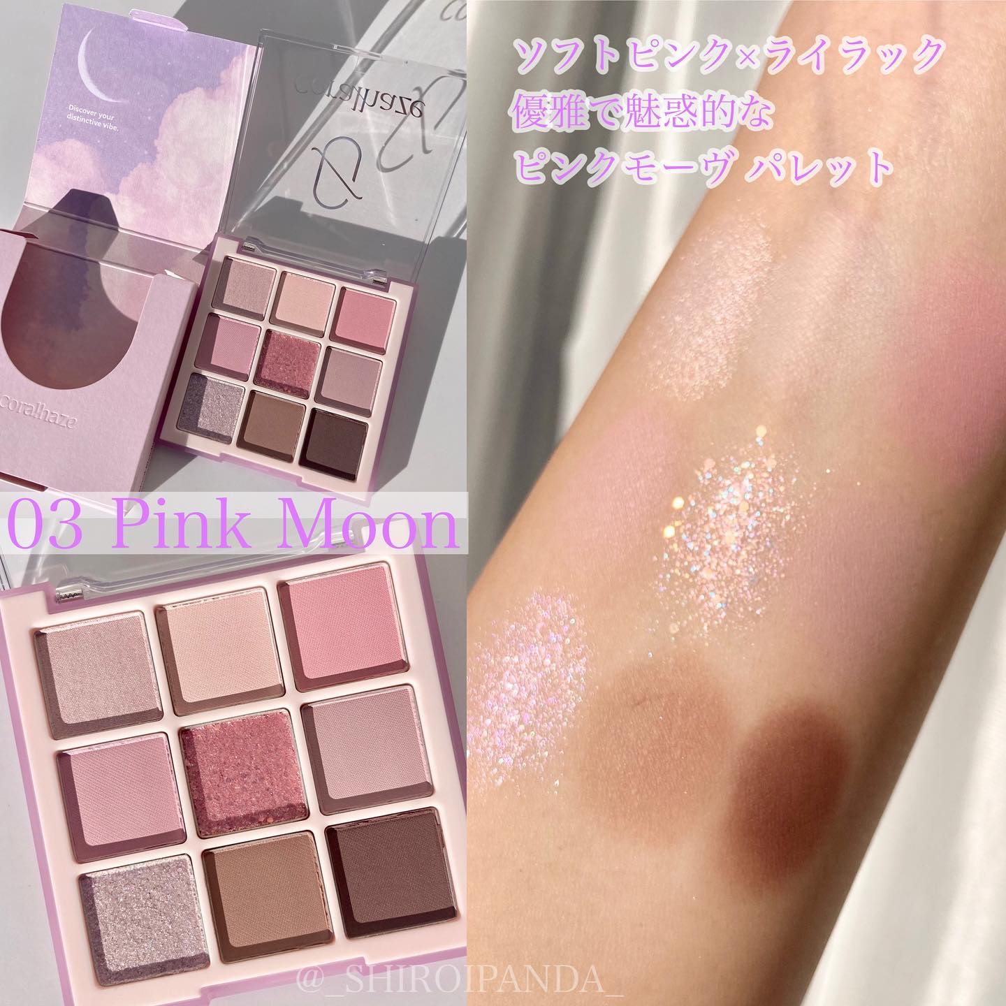 \ミルクピンクで大人可愛メイク/【Coralhazeムードブレンディングシャドウパレット】☑️03ピンクムーン青みピンク・ライラックを中心にキラキララメ映えするようなモーブカラー。パレットのテーマが『一つで完成する私だけのムード』・1つ...