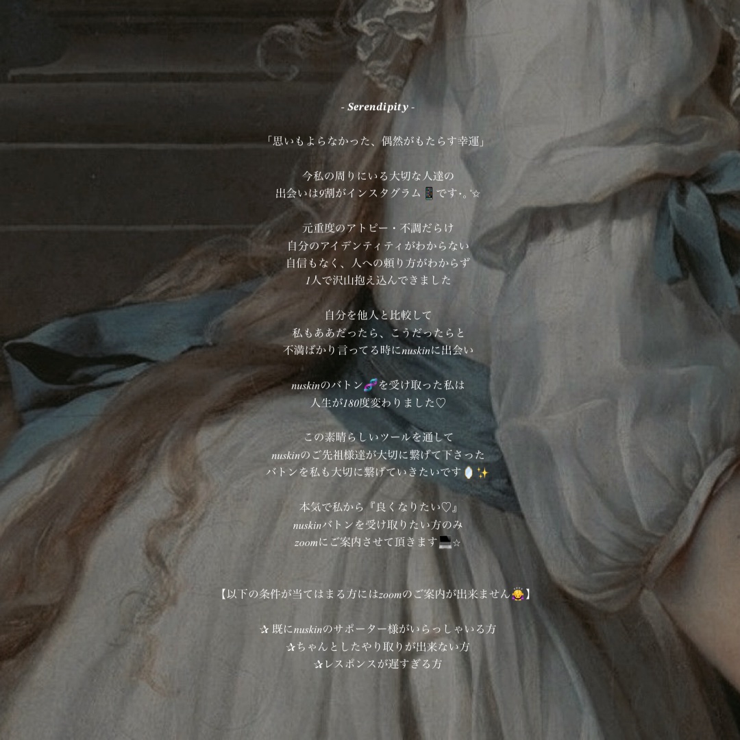 ⚠︎dm📨前にお読みください⚠︎ -𝑺𝒆𝒓𝒆𝒏𝒅𝒊𝒑𝒊𝒕𝒚-「思いもよらなかった偶然がもたらす幸運」 今私の周りにいる大切な人達の 出会いは9割がインスタグラム📱です⋆。˚✩ 元重度のアトピー・不調だらけ 自分のアイデンティティがわからない...