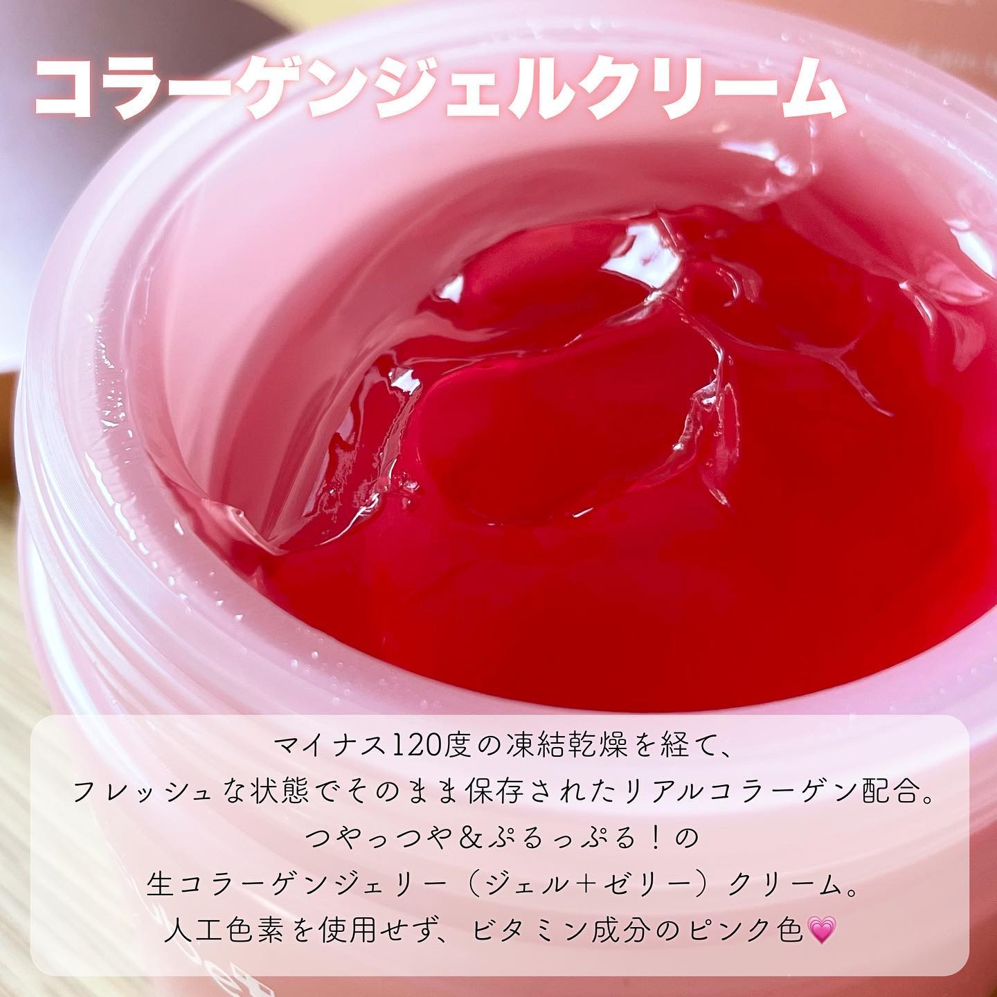 - 凍結簡素工法により、リアルコラーゲン*をそのまま配合したぷるぷるつやつやのジェルクリーム。塗るとすぐにツヤ感を与え長時間保湿感を維持します。*保湿成分