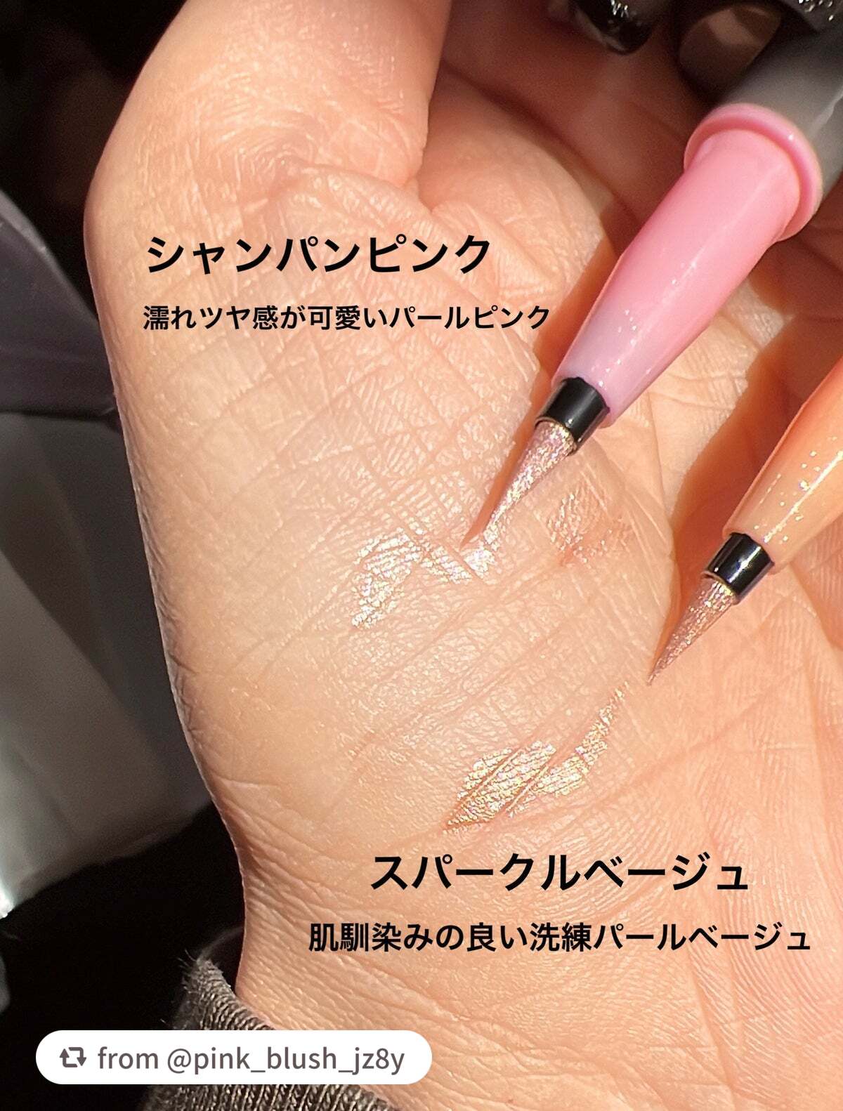 - 数量限定4色 ラブ・ライナーから涙袋やダブルライン、アイシャドウなどマルチに使えるリキッドタイプのグリッターライナー。 ブラックやブラウンなど定番カラーのアイラインに重ねて使うこともできます。リッチに輝くジュエル級のラメを配合し、地肌を透けさせた発色でキラめく目元を演出。 汗・皮脂・こすれなどに強いダブルプルーフ設計でキラめく眼差しを長時間キープします。 肌なじみの良いピンク・ベージュと、クリアカラーをベースにしたシルバー・ゴールドの4色展開。