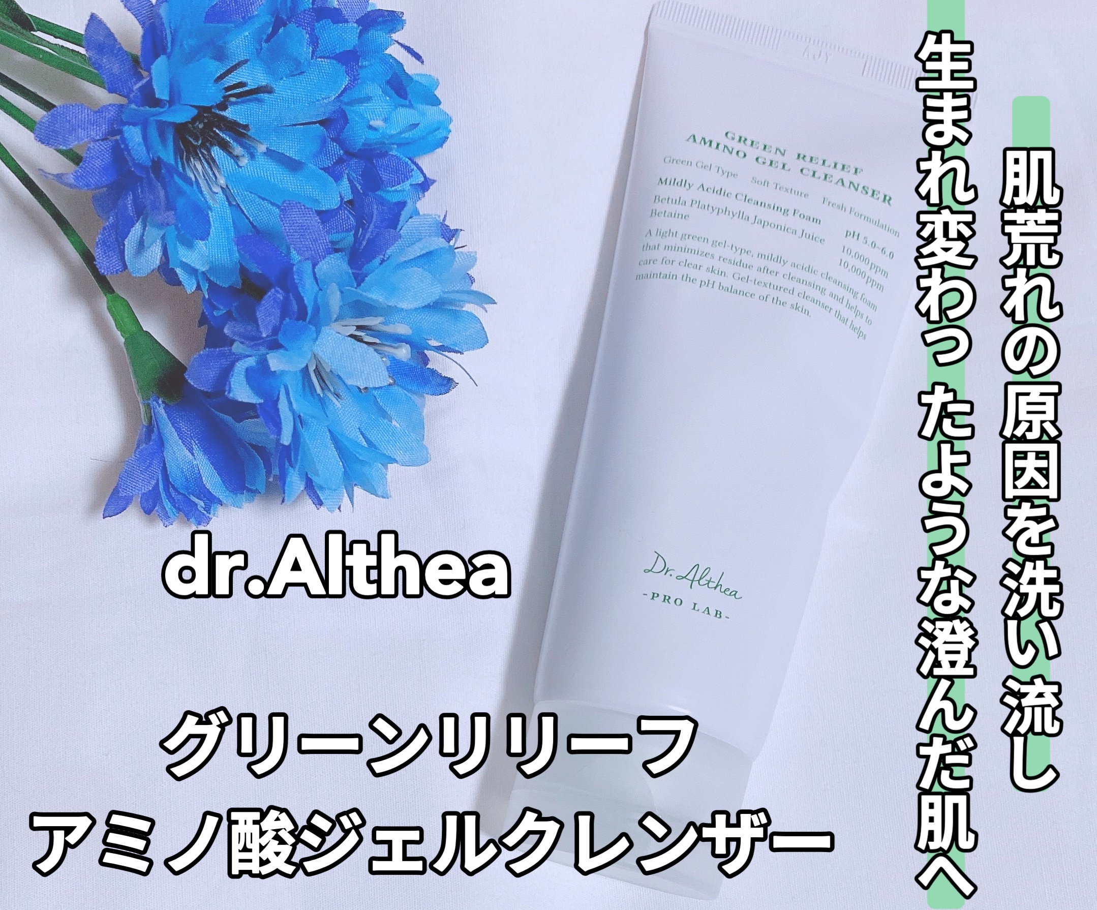 Dr.Altheaグリーンリリーフアミノジェルクレンザー 100ml¥1,700(税込)[良かった点]・そのままでも泡立てても使える・洗い上がりつっぱらない・優しい洗い心地[微妙な点]・特になし〜感想〜泡立てずに使えるのが楽です!匂いは特に感...
