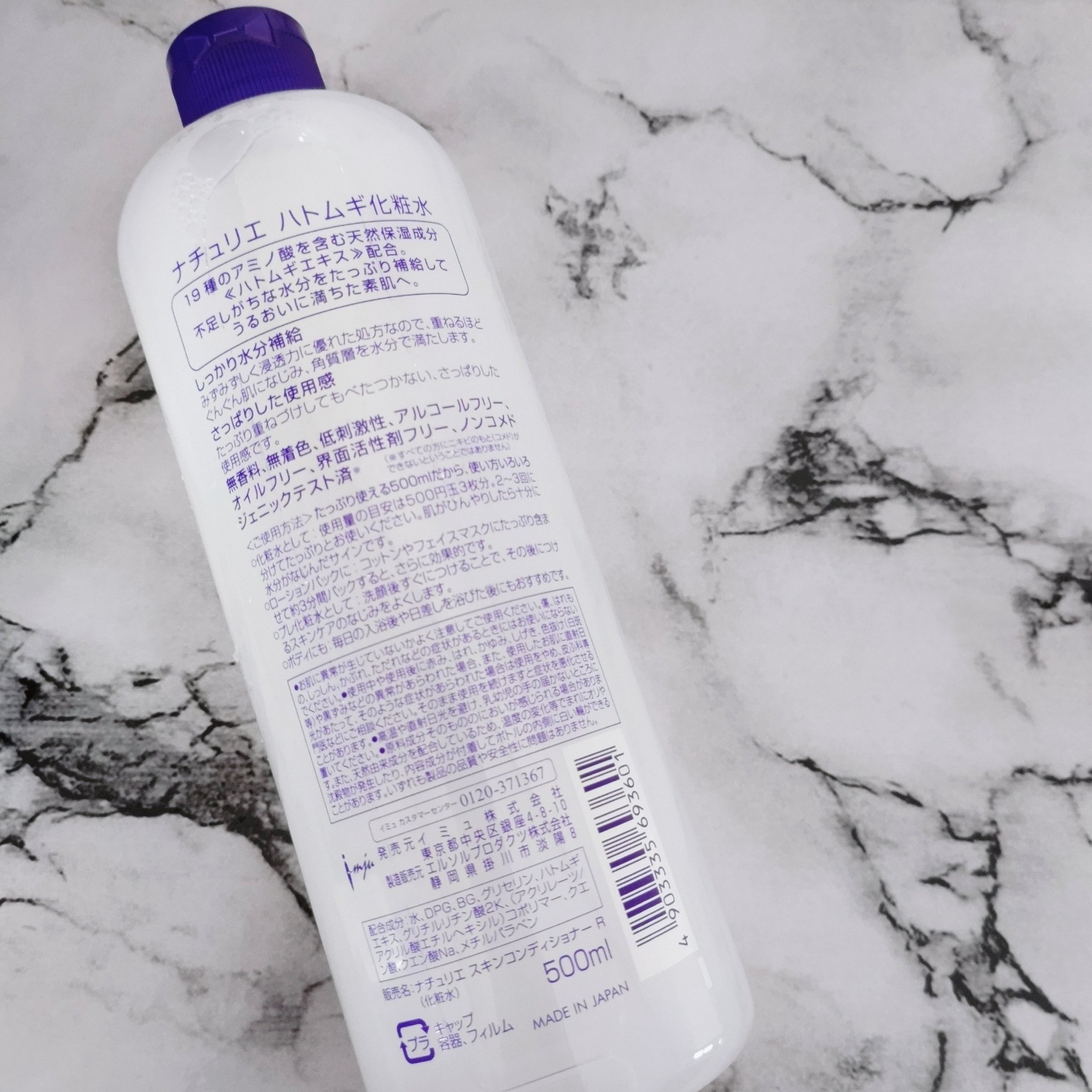 - <通常サイズ 500ml> 水、DPG、BG、グリセリン、ハトムギエキス、グリチルリチン酸2K、(スチレン/VP)コポリマー、クエン酸、クエン酸Na、メチルパラベン <500ml+ 限定ムーミンデザインボトル> 水、DPG、BG、グリセリン、ハトムギエキス、グリチルリチン酸2K、(スチレン/VP)コポリマー、クエン酸、クエン酸Na、メチルパラベン <詰め替えタイプ 480ml> 水、DPG、BG、グリセリン、ハトムギエキス、グリチルリチン酸2K、(スチレン/VP)コポリマー、クエン酸、クエン酸Na、メチルパラベン <旧製品> BG、グリセリン、メチルパラベン、エタノール、グリチルリチン酸2K、ハトムギエキス、DPG、クエン酸Na、プロピルパラベン、クエン酸、(スチレン/アクリレーツ)コポリマー、水 <限定ムーミンデザイン> 水、DPG、BG、グリセリン、ハトムギエキス、グリチルリチン酸2K、(スチレン/VP)コポリマー、クエン酸、クエン酸Na、メチルパラベン
